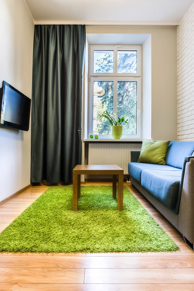 Akár teljes padlószőnyeget választasz, akár csak egy kicsi, előszobába valót, az élénk színű szőnyegek remekül feldobhatnak egy minimalista stílusú szobát is.