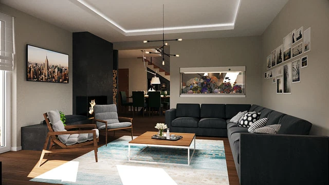 A vízi világ rajongói nem lőhetnek mellé egy stílusosan beépített akváriummal! Amellett, hogy dinamikus faldíszként, esetenként térelválasztóként funkcionál, segít stresszmentessé tenni a mindennapokat a halak nyugtató úszkálásának és a vízmelegítő rendszer búgó hangjának köszönhetően.