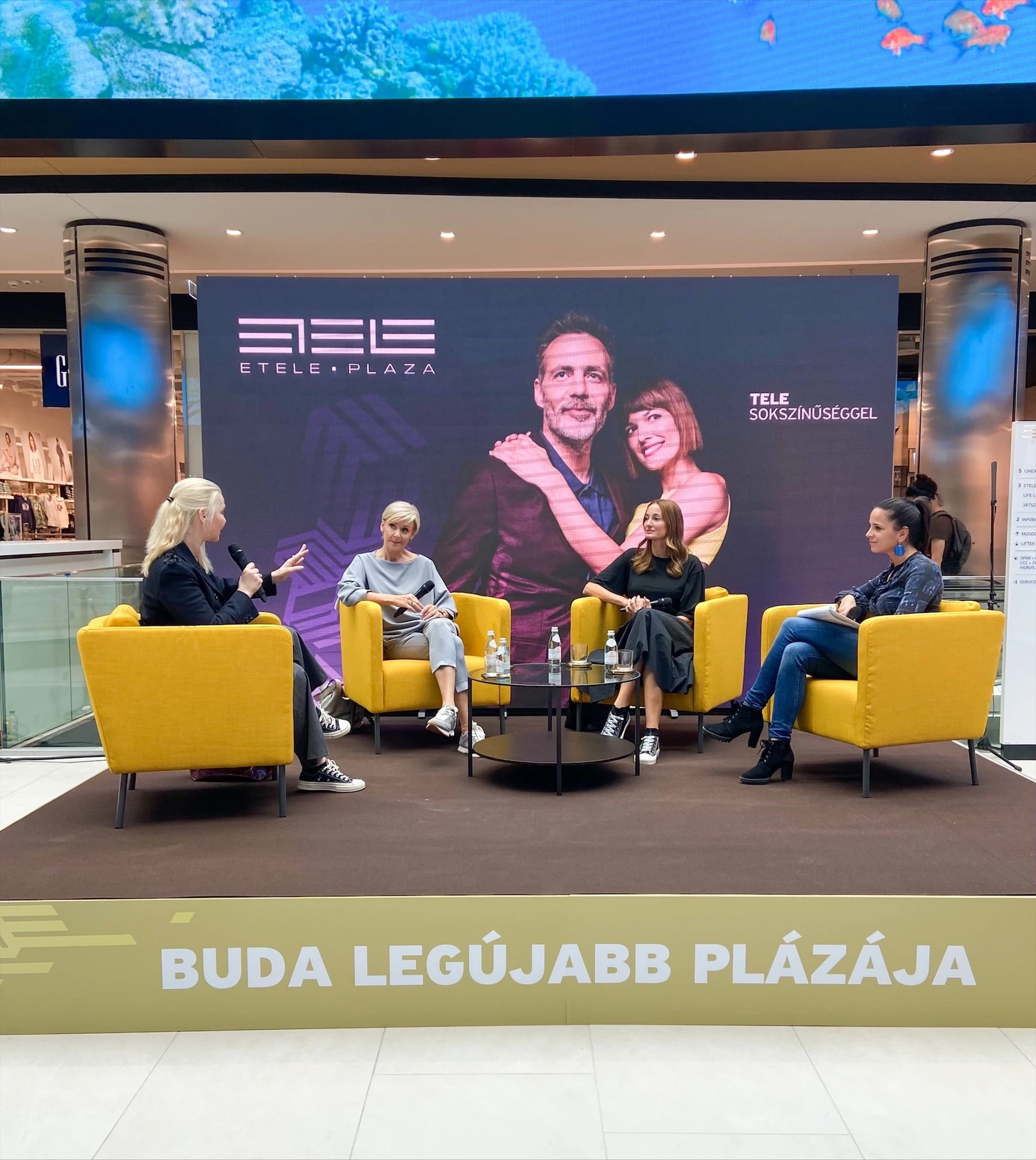 A kerekasztal-beszélgetést Buda legújabb plázájának, az Etele Plaza-nak átriumában rendezték meg a vásárlóközönség részvételével. A beszélgetést követően még hosszan válogattak a gyermek- és női ruházati márkák széles választékából a vendégek.