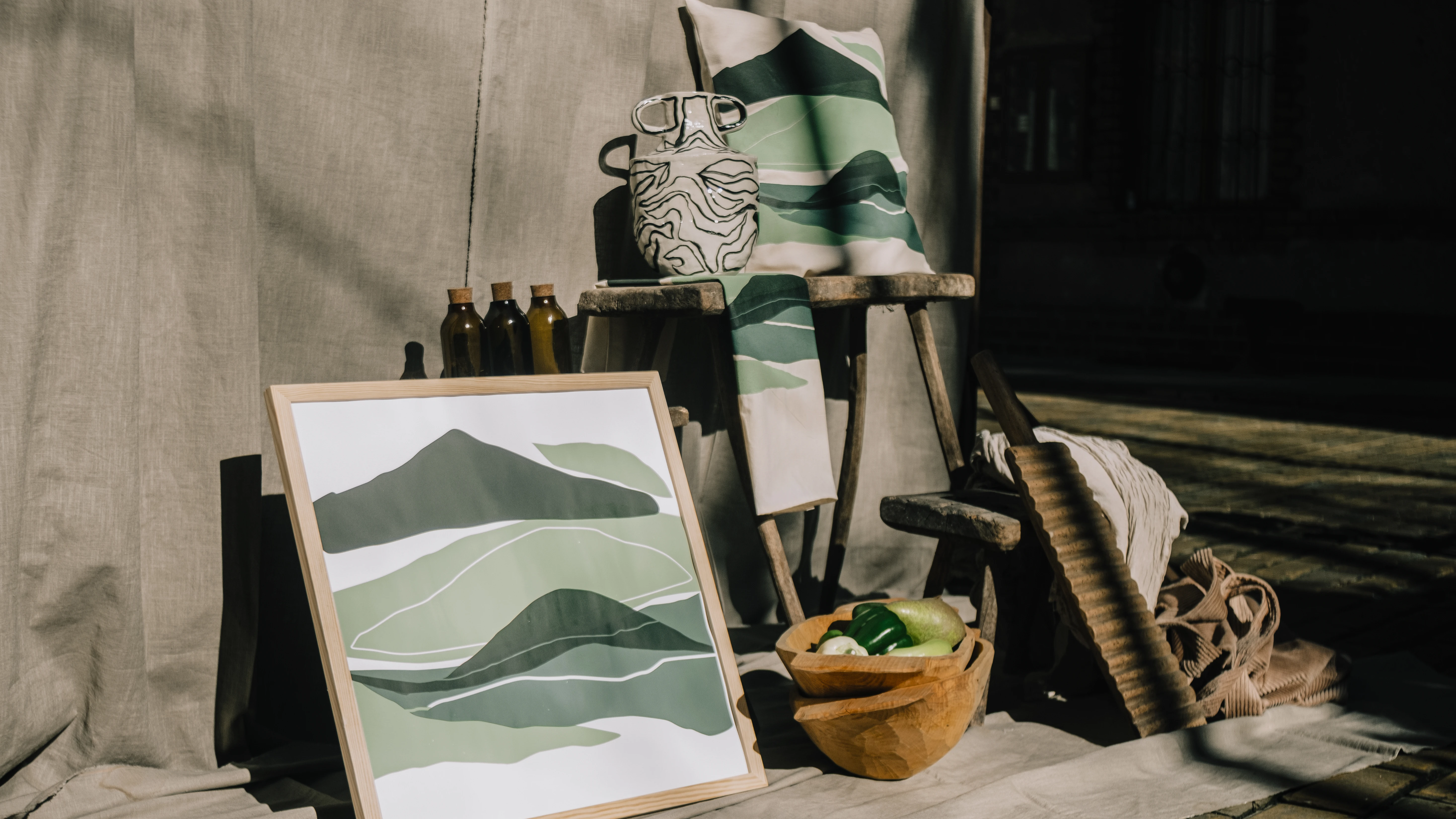 A népszerű Balaton és Mátra grafikák pedig közkívánatra textíliákra is rákerültek: most párnahuzat, nagy shopper, konyharuha és neszeszer formában is hazavihetők. A kollekciót natúr színpaletta jellemzi, amiből ragyogón kitűnik a Balaton kellemes kékje és a Mátra vibráló zöldje. A minták kézzel, vízbázisú szitanyomással kerülnek rá a natúr pamut és a juta vászon anyagokra a Printa műhelyében.