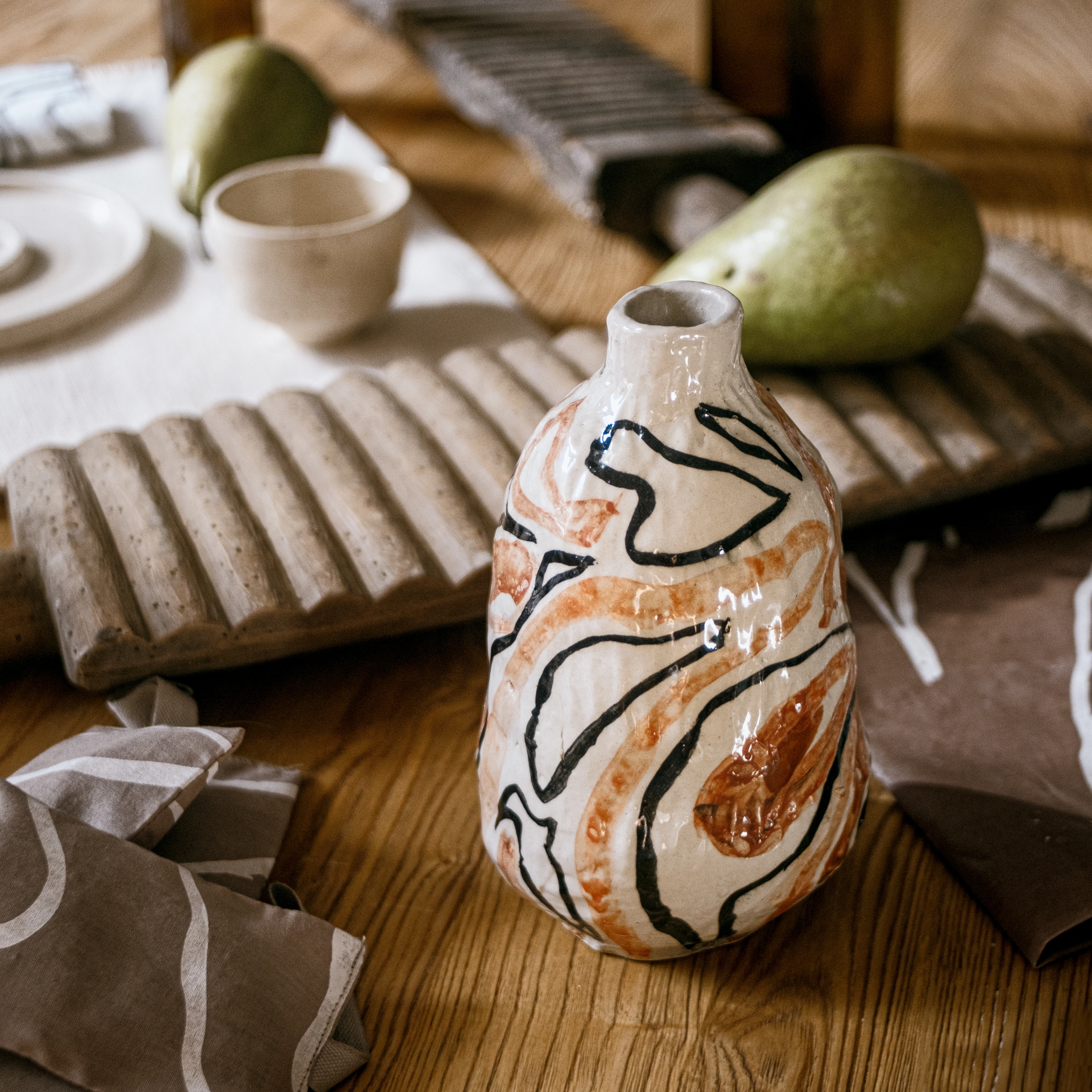 A Neo Cottage Majoros Zita új kerámiakollekcióját is magába foglalja. Az absztrakt minták egységesek ugyan, mégis minden darab egyedülálló, mivel kézzel készülnek, a formázást, a festést és a mázolást is beleértve. Az így megalkotott vázák és a tál mind a vidéki élet sajátosságaira reflektálnak, miközben a kortárs irányzatokkal is harmonizálnak. Kézművesség, lelassulás, idill és a tökéletlenségben rejlő őszinte esztétika: ezt adja a Printa Neo Cottage kollekció.