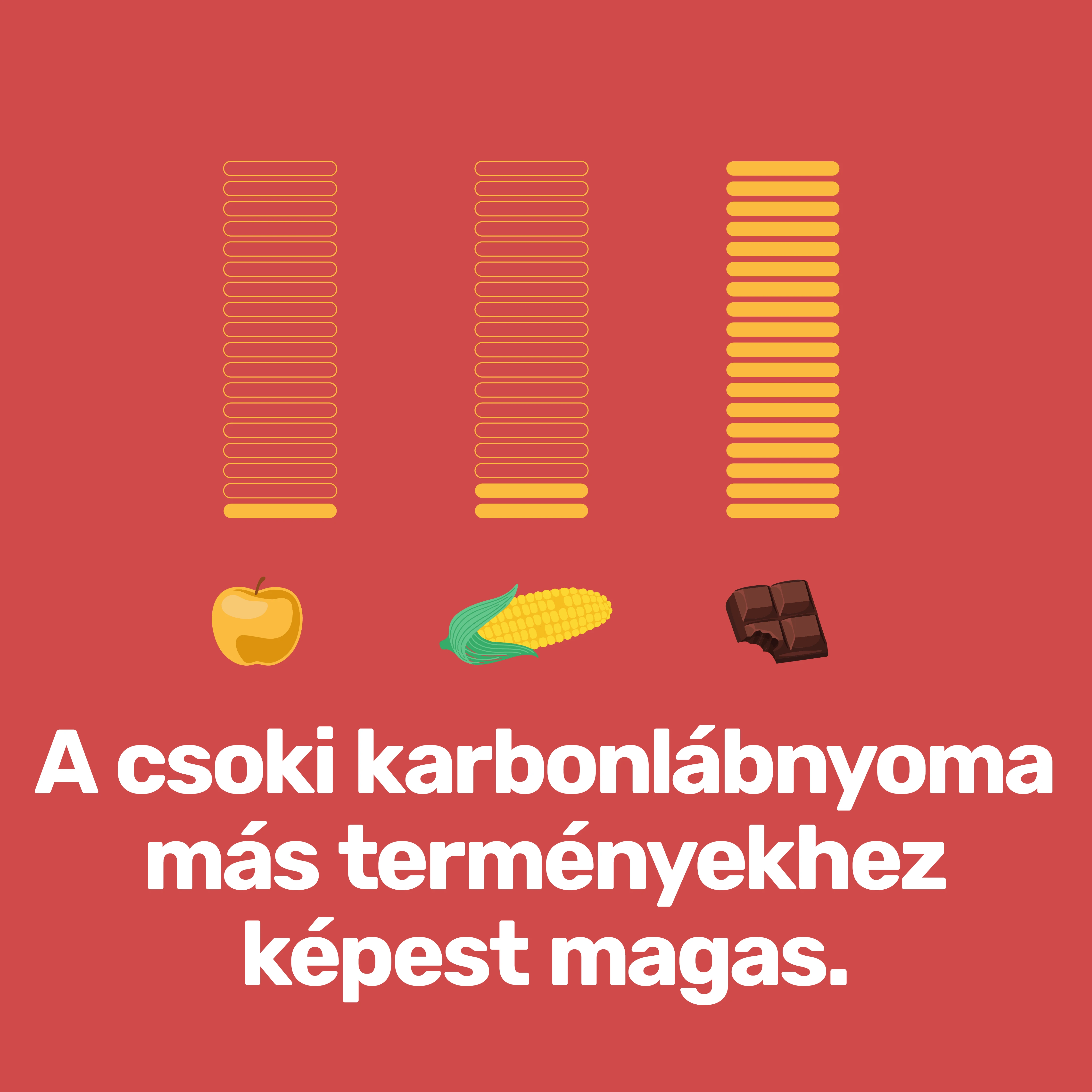 A kakaóültetvények terjedése tehát hozzájárul az erdőirtáshoz köthető szén-dioxid kibocsátáshoz. Ennek eredményeként a csokoládé is rendelkezik karbon-lábnyommal. Becslések szerint a csoki karbon-lábnyoma akár 19 kg CO2-ekvivalens/kg is lehet (összehasonlításként: a marhahús esetén ez az érték 60 kg CO2-ekvivalens/kg, a kukorica esetén 1 kg CO2-ekvivalens/kg, az almáé csupán 0,4 kg CO2-ekvivalens/kg). A fokozott műtrágya használat a nitrogén-oxid kibocsátásának növekedéséhez vezet, ami szintén hozzájárul a karbon-lábnyom emeléséhez.