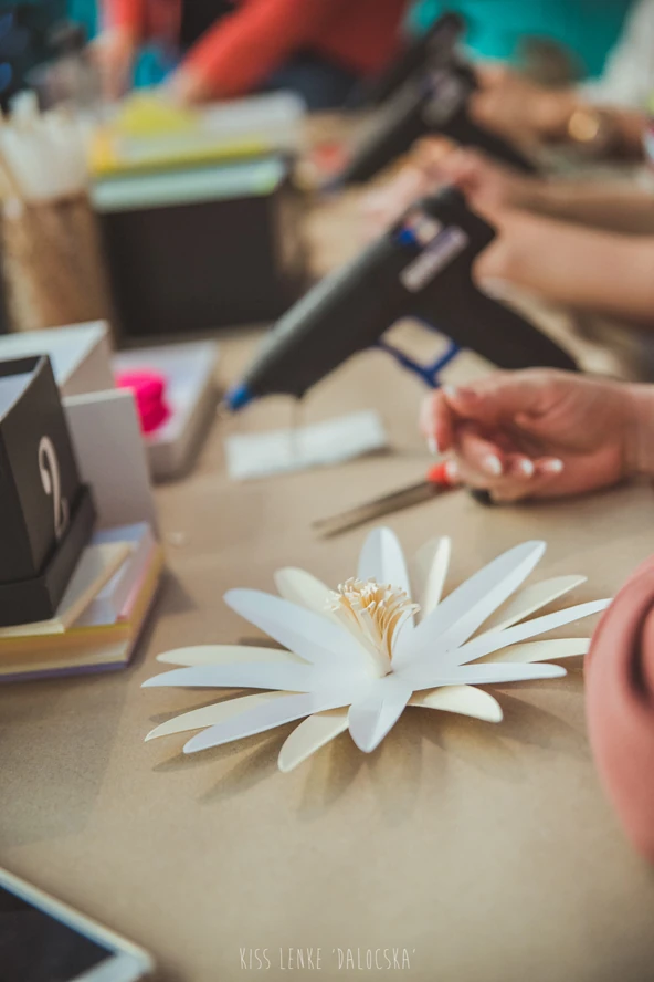 A különleges márka mögött a rendkívül kreatív Németh Edina áll, aki nem fél tudását átadni a kézimunkára éhes érdeklődőknek. Immár második alkalommal rendezte meg a Paper Garden workshopot, ahol kiscsoportban, Edina vezetésével ismerkedhetünk meg a papírvirág-hajtogatás csínjával. A foglalkozáson nemcsak egy igen látványos alkotás születik, ami lakásdekorációnak is tökéletesen megállja a helyét, hanem egy remek csapat is kialakul, amit a kikapcsolódás, a hétköznapi gondoktól való elszakadás és az alkotás öröme tart össze.
