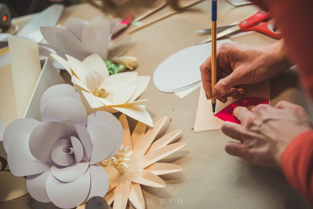 Több féle tematika van, márciusban cseresznyevirág-koszorúkkal készültem, most áprilisban karton virágokat készítettünk, májusra már új téma van a fejemben. Egy ilyen workshopon, a rövid bemutatkozás után, közösen végigmegyünk az alkotási folyamaton, majd szinte minden alkalommal mindenki belefeledkezik az önfeledt alkotás csendjébe. Azt hiszem, ez a kiszakadás az, amiért igazából eljönnek a jelentkezők.