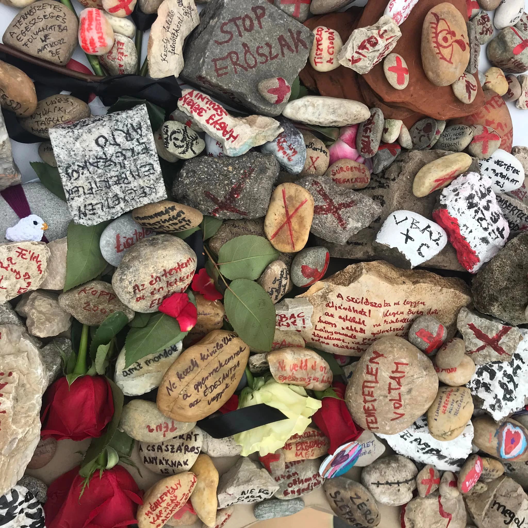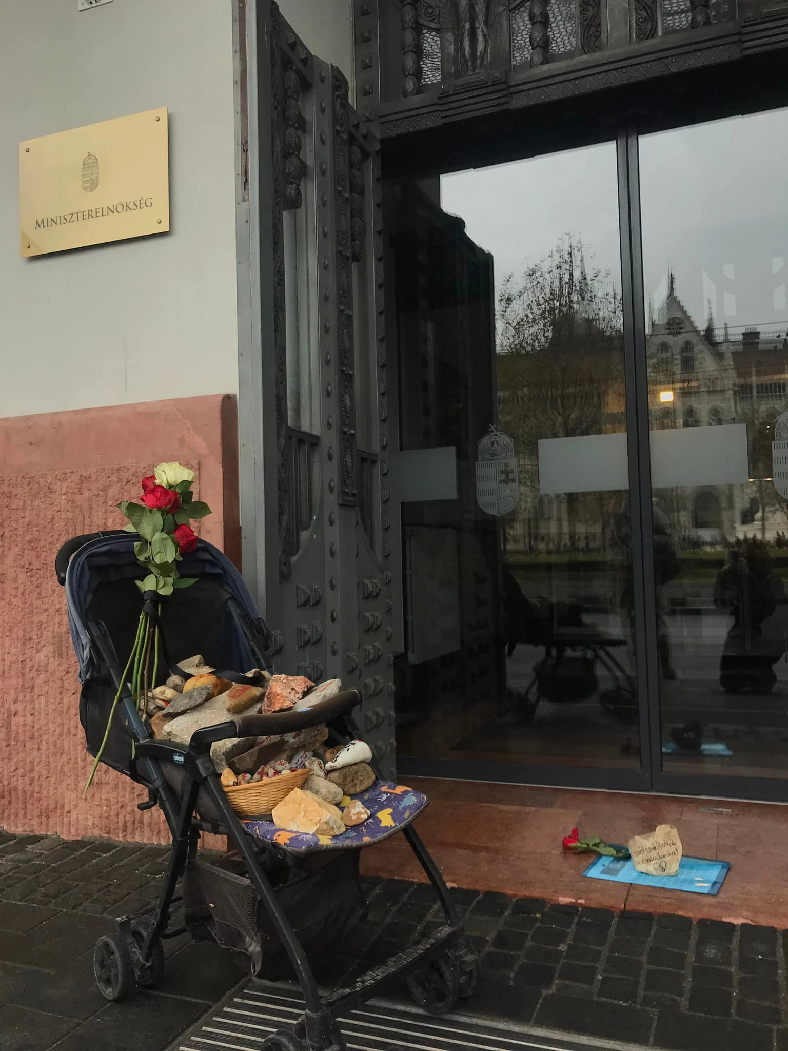 A budapesti központi rendezvény résztvevői üzenetekkel teleírt kövekkel megrakott szülőágyat toltak a Parlament elé. A kövek azokat az ellátás okozta terheket szimbolizálják, amelyeket a nők a szüléseik óta cipelnek a családjaikkal együtt. Most viszont felszólítjuk Magyarország kormányát, hogy viselje a felelősség terhét a nők helyett!