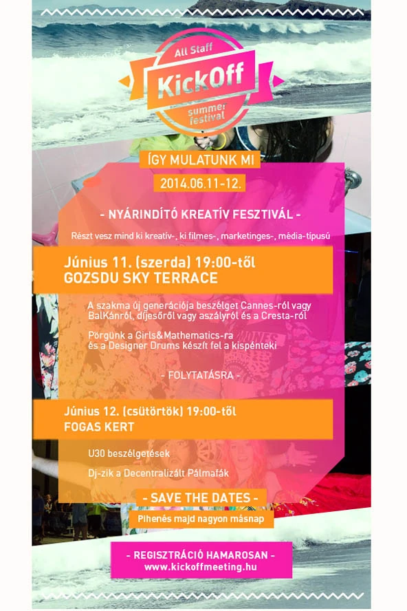 Az All Staff Kick Off honlapján lehet regisztrálni a rendezvényre, majd egy óriásit partizni szerdán és csütörökön a Gozsdu Sky Terrace, valamint a Fogas kert szórakozóhelyeken.