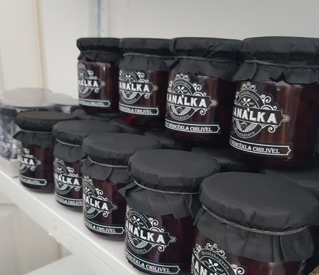 Most pedig menjünk be az üzembe, és nézzünk kicsit körül! Jelenleg négy embert foglalkoztatnak állandó jelleggel, ők ottani lakosok és családanyák, akiket a manufaktúra felkarolt, és állandó munkát biztosít nekik. Emellett Budapesten kettő, Szegeden pedig egy ember segíti a lányok munkáját. Az épület tökéletesen tiszta és rendezett, és látszik, hogy az itt dolgozók szeretettel, szívvel-lélekkel végzik a munkájukat. A Kanálkának jelenleg 13 terméke kapható, többek között különböző zöldségkrémek, chutney-k, sült zöldségek és chipsek, melynek az a különlegessége, hogy aszalógépekben készítik el a zellert és a céklát, olajok vagy sütés nélkül, így egészségesek, de mégis finomak és roppanósak maradnak. Mindegyik termék adalékanyag- és tartósítószer-mentes, illetve a glutén-é s laktózérzékenyek is bátran fogyaszthatják őket. Ha valaki kedvet kapott hozzájuk, és szívesen kipróbálná őket, a delikátesz- és gourmet boltok mellett sok pékség és az egyik prémium minőségű termékeket forgalmazó magyar üzletlánc is árulja a készítményeket, akik boldogan fogadtak egy olyan márkát, melynek termékei magyar alapanyagokból, magyar munkaerő által készülnek, de mégis egy új íz-és színvilágot hoznak magukkal. A húzótermék egyértelműen a padlizsánkrém, hiszen azt nagyon sokan ismerik, míg a chutney-kat például be kell mutatni a legtöbbeknek, és megmutatni, mivel és hogyan fogyaszthatóak, így azok (egyelőre) kevésbé népszerűek.