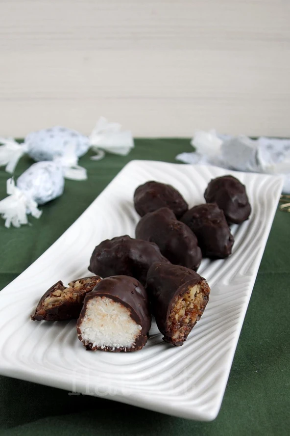 Így készítsd el: A hozzávalókat egy tálban dolgozd össze úgy, hogy jól formázható állagú legyen. Készíts szaloncukor formákat belőle, egy kis időre tedd a hűtőbe, hogy megdermedjen. Közben a csokit olvaszd fel, majd forgasd bele a szaloncukrokat, és ismét tedd vissza a hűtőbe, hogy a csoki is rádermedjen.