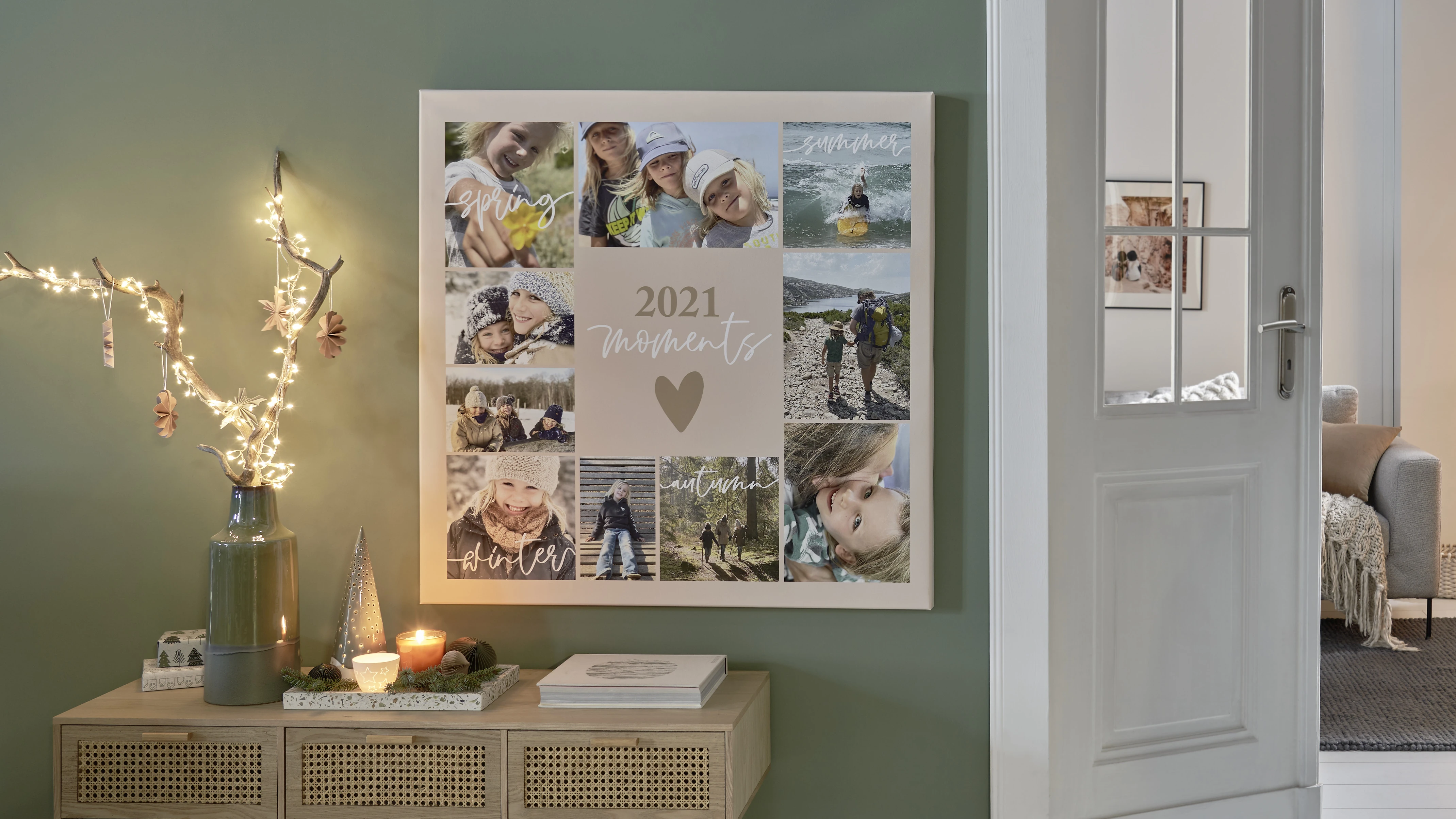 A fényképeknek mindig örül az ember, főleg, ha kézbe veheti őket. Rengeteg családban családi hagyomány karácsonykor sztorizni a fa körül, és adogatni egymásnak körbe a korábban készült fotókat. Legyél újító: gyűjtsd össze például a nagyiéknak az unokákról és a rólatok készült képeket, és tervezz a CEWE Fotóvilág szoftverrel egy hatalmas kollázst, hadd mosolyogjon egész évben, amikor meglátja a családi képeket.