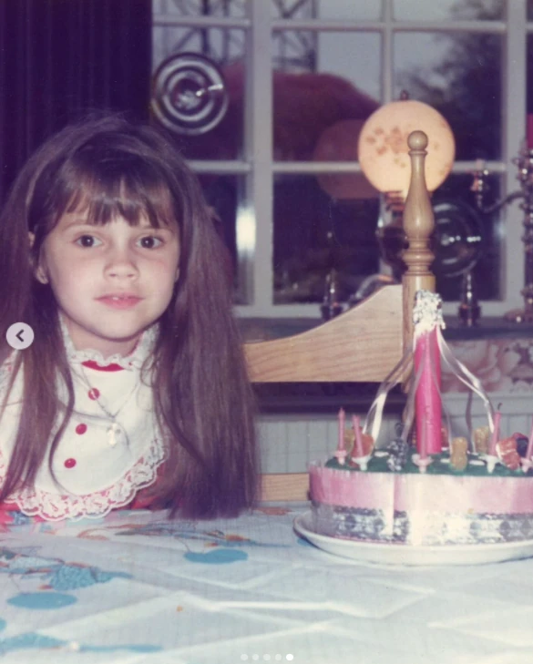 A másik kedvencünk pedig Victoria gyerekkori fotója, amin hosszú hajjal pózol egy rózsaszín torta mellett.
