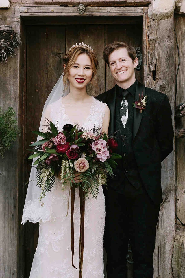 A pár egy februári meleg, tavaszi napon mondta ki a boldogító igent szülővárosukban, Los Angelesben, míg a kutyájuk és a közel 100 meghívott az esküvő tematikájához igazodva az "elegáns talárviselet-inspirálta" dresszkódot követte.