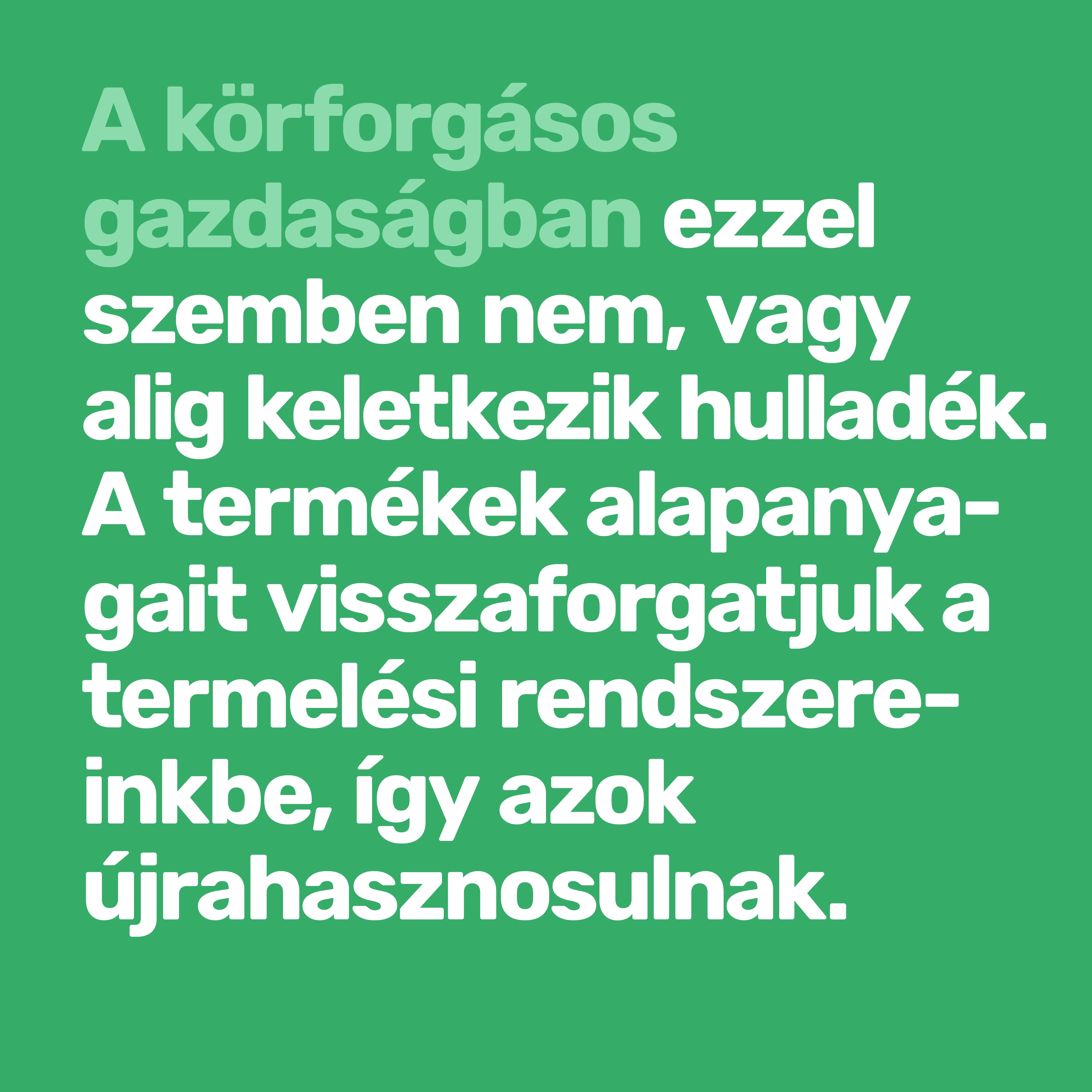 A körforgásos gazdaság koncepciója nagy hírnévre tett szert azóta, hogy az Európai Bizottság 2015 decemberében kiadta a megvalósításával kapcsolatos első akciótervet, amit azóta frissítettek. A körforgásos gazdaság az elmúlt 250 év ipari fejlődése során felállított lineáris rendszernek („elvesz-termel-eldob”) az ellentétje, amiben nem keletkezik hulladék, a termékek alapanyagait visszaforgatjuk a termelési rendszereinkbe, így minden anyag hasznosul.