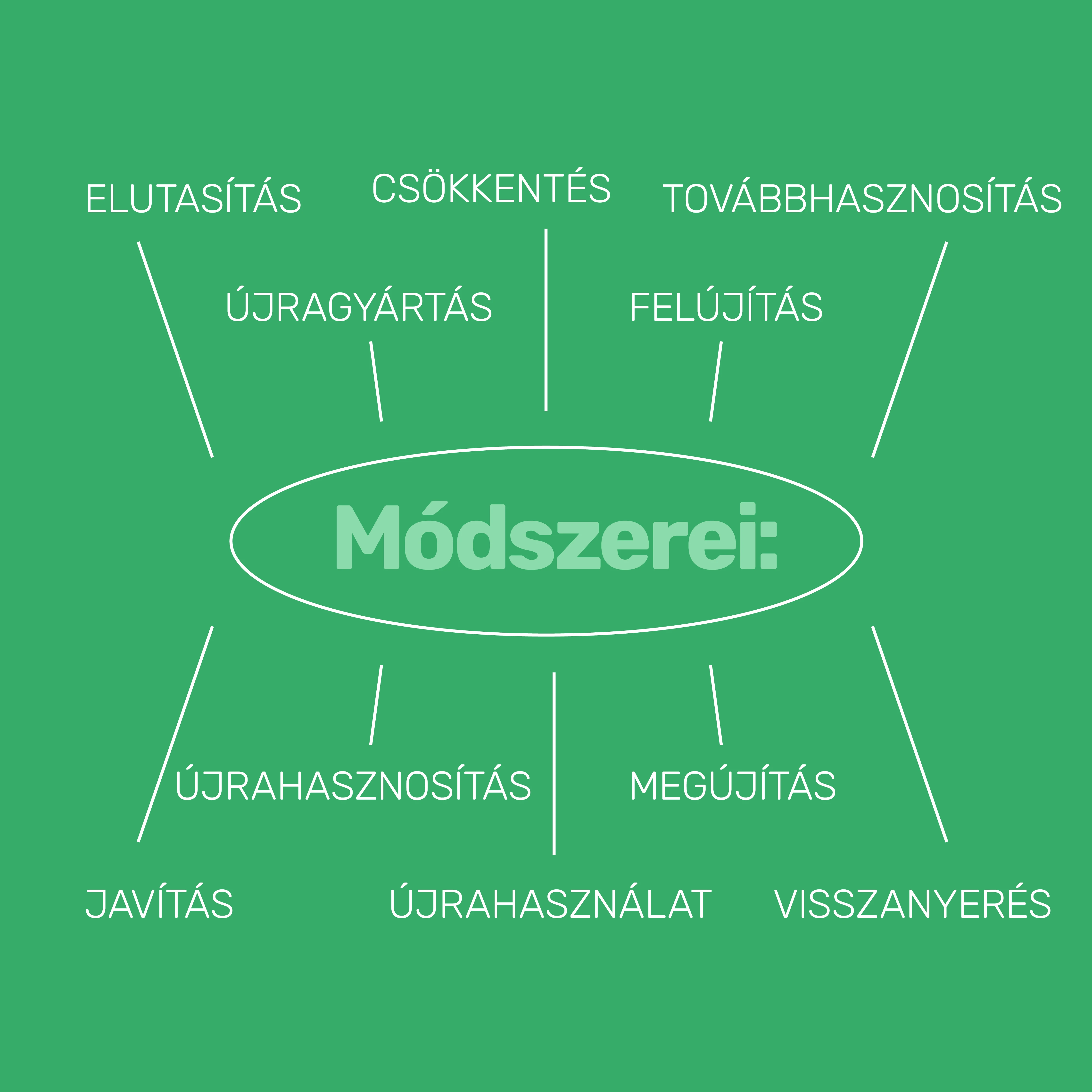 - A hulladékkezelés helyett a hulladékmegelőzésre fókuszáló Zero Waste kezdeményezés már szintén régóta létezik, amelynek a hierarchiája a termékélettartam meghosszabbítását és a materiális fogyasztás csökkentését preferálja az újrahasznosítás felett.