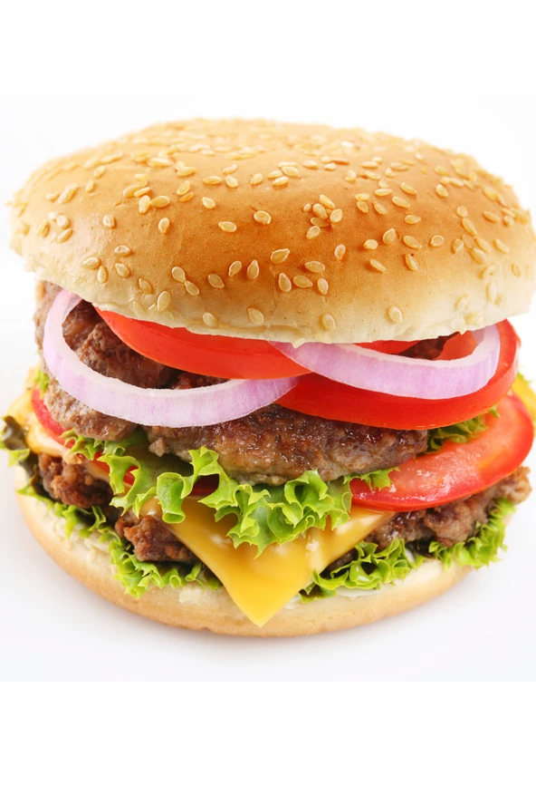A húst sóval, borssal, apróra vágott vagy reszelt hagymával keverd össze és formálj nyolc kb. 11-12 cm átmérőjű, 1 cm vastag pogácsákat a masszából. Süsd ki a pogácsákat (ha kerti grill rácsán sütöd, érdemes előtte lefagyasztani a pogácsákat, hogy sütés közben ne essenek szét, de tálcán vagy tűzhelyen serpenyőben is kisütheted). Ha megvagy, a salátát mosd meg, szedd leveleire, tépkedd el a hagymát, az uborkát és a paradicsomot karikázd fel. A sajtot szeleteld fel, a zsömléket vágd félbe. Utóbbit érdemes a hús sütése közben a kisülő zsírban kicsit megpirítani. A megpirított zsömle aljára tedd a sajtot, rá a forró húspogácsát, majd salátalevelet, és a paradicsomot-, hagymát-, uborkakarikákat. A zsömle tetejét kend meg mustárral, ketchuppal vagy majonézzel (ízlés szerint akármelyikkel), majd illeszd össze.