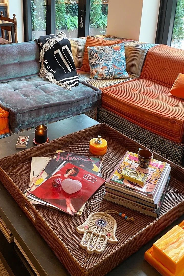 Ahogy azt el is várnánk, a modell számos tárgyat a kedvenc tervezőinek a lakberendezési vonalából választott, így lett például a nappali éke egy óriási, színes Missoni sarokkanapé Jean Paul Gaultier párnákkal díszítve.