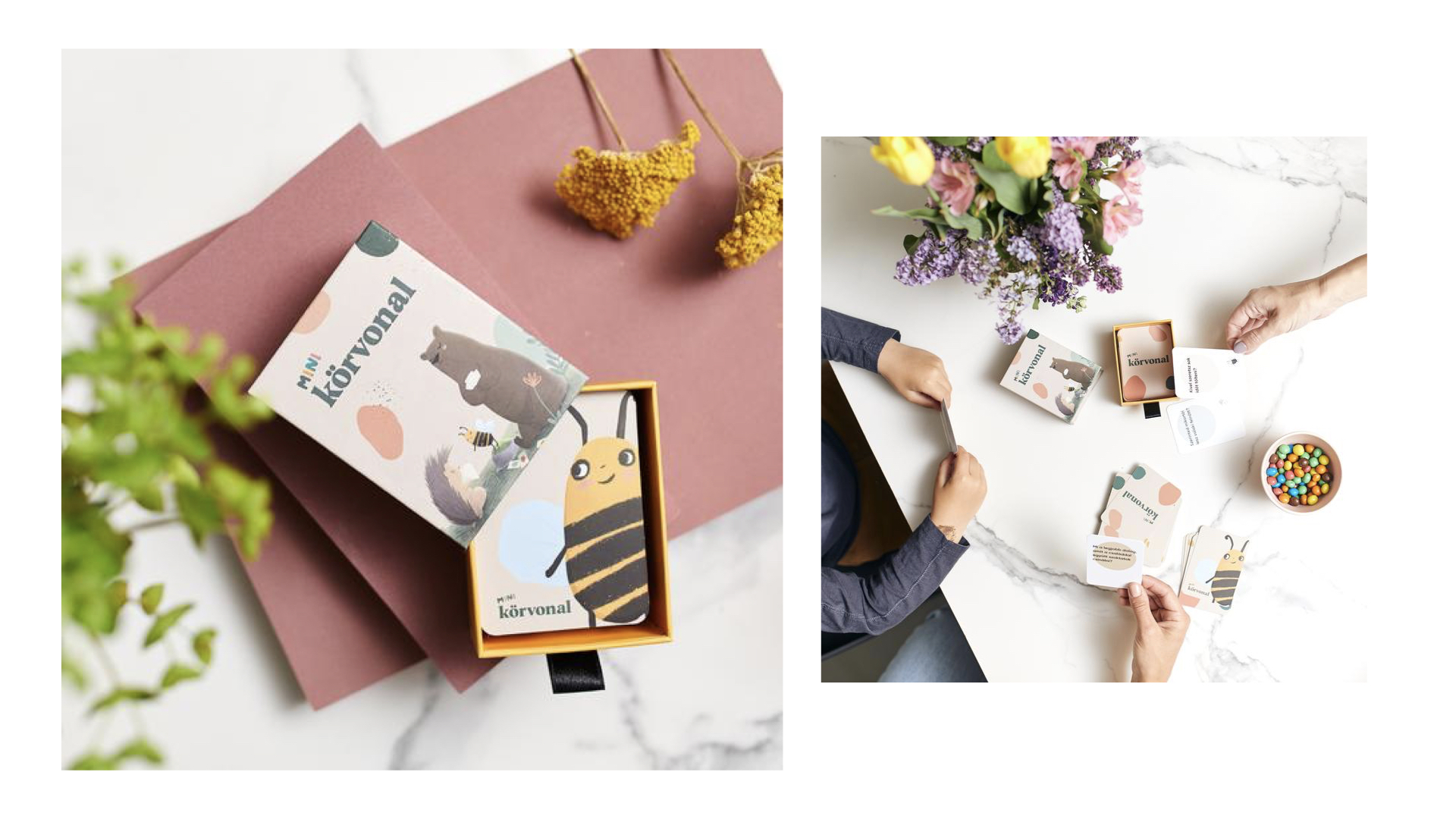 A másik - kicsit elfogultan, mert a saját termékem - egy beszélgetős kártyajáték, ami szerintem 5-15 éves korig bárkinek jó ajándék. Ez a mini körvonal, aminek a célja, hogy beszélgetéseket kezdeményezzen, megnyissa a gyerekeket és olyan kérdésekre válaszoljanak általa, amikre egyébként talán nem tennék. “