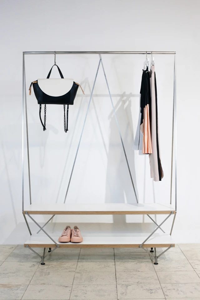 A VERTIGO előszobabútor filigrán, légies megjelenése mellett teljes értékű funkcionalitással rendelkezik. A felső akasztórúdon ruhák, kiegészítők helyezhetők el, a padra leülve kényelmesen húzhatod fel a cipődet, az alsó rakodófelület pedig tökéletesen alkalmas féltett cipőid diszkrét tárolására. Az előszobabútor a polcrendszerhez hasonlóan egyedi megrendelésre készül, az általad kiválasztott színekben, méretben, akár tömörfa kivitelben is.