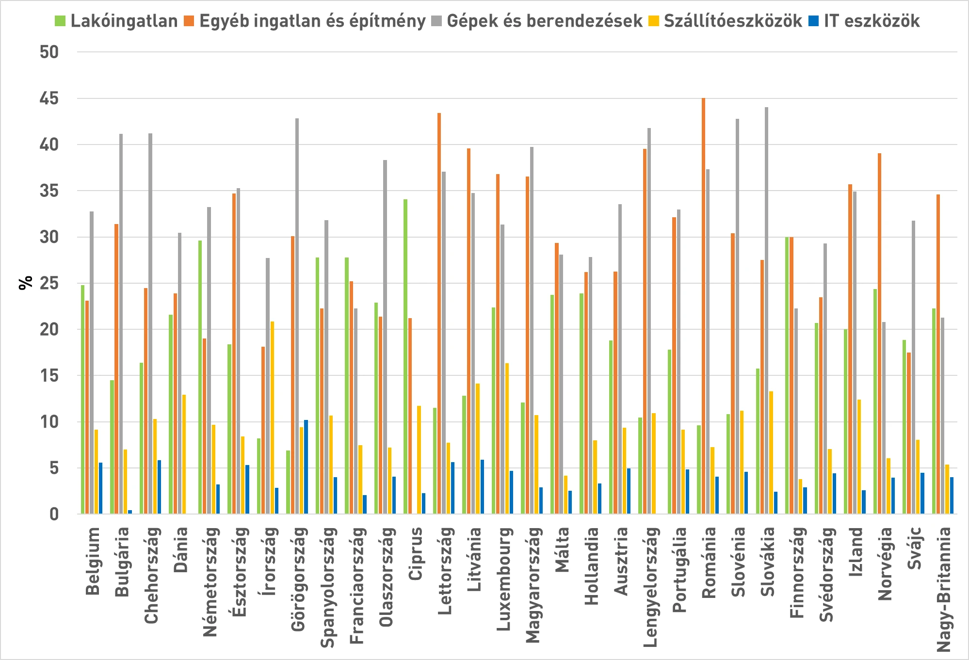 A digitalizáció 21. századi szintjén is a teljes bruttó beruházás legfeljebb öt százaléka szolgálja az IT eszközök bővítését Európa szerte (lásd például 2018-ban, a sötétkék oszlopok a lenti ábrán). Ugyanakkor mivel a jövedelemmel exponenciálisan nő a tőkejövedelmek aránya, globálisan és hazánkban egyaránt, ezen jövedelmek növekedését elősegítő adóreformok sem járultak hozzá a gazdasági növekedéshez, csupán a jövedelem-egyenlőtlenség fokozódásához vezettek.