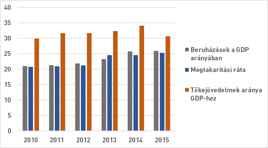A hazai adatok alapján is jól látható, hogy a GDP magasabb aránya képez tőkejövedelmet, mint amennyi a GDP-ből nem elköltött, tehát megtakarított jövedelem. Mindez folyamatosan fűti a tőkepiaci kínálatot.