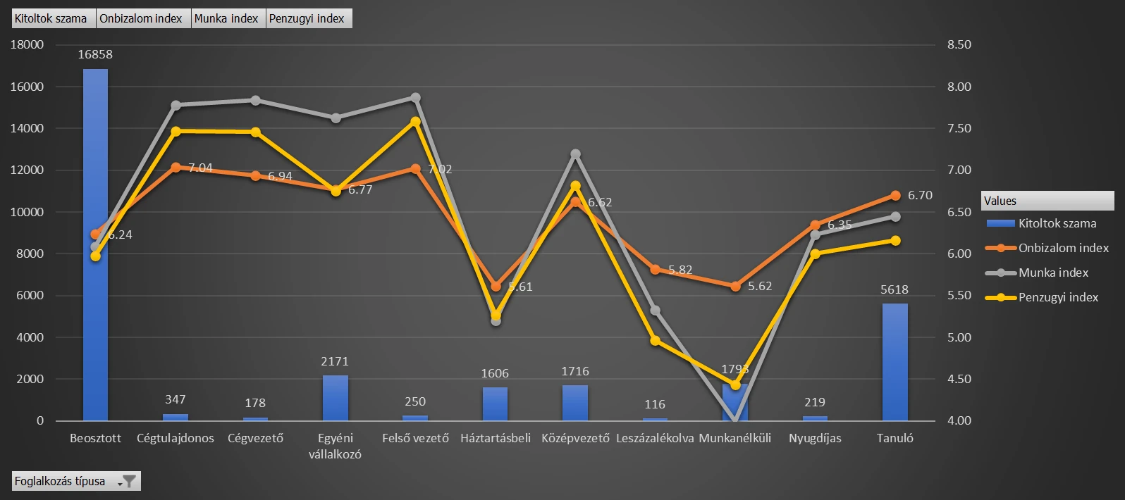 A felmérés további érdekessége, hogy a hatvan pluszos kitöltők lényegesen magasabb pontszámokat adtak meg, boldogabbnak, kiegyensúlyozottabbnak értékelték önmagukat, míg a harmincas-negyvenes korosztály inkább szorong, nincs kibékülve sem családi állapotával, sem önmagával.