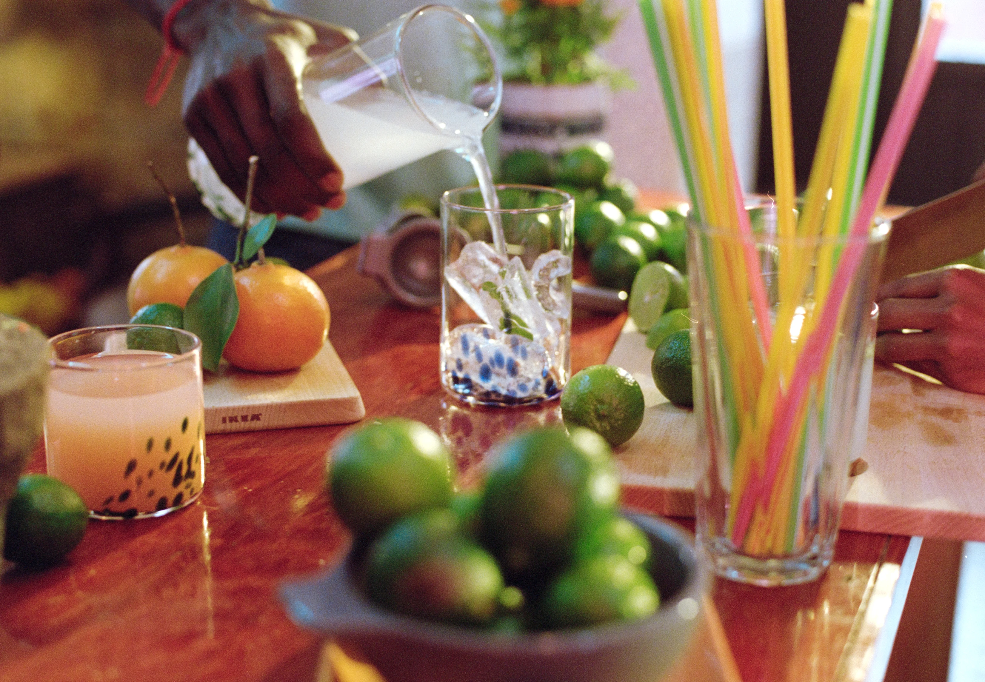 Nem tudtunk személyesen találkozni, az online térben zajlottak az ötletelések. Mielőtt elindultak a tervezési folyamatok, megkértek minket, meséljünk a saját történetünkről és történelmünkről, mindenki a saját kultúráját és kifejezésmódját mutatta be, amit később beleszőtt az általa létrehozott alkotásokba. Ezután arra kértek minket, próbáljuk meg ezeket a történeteket a tervezési folyamatokba szőni, így jutott eszembe a közös limonádékészítés anyukámmal. Feltettem magamnak a kérdést, hogy lehetne ezt átültetni a tárgyakba? Több tárgy is volt a fejemben, végül redukálódott a kicsi lime szeletekre emlékeztető tálra, a kézzel fújt poharakra, a lámpaernyőkre és az ülőkére. Az anyaghasználat tekintetében is rendkívül sokszínű volt az alkotói folyamat, fával, üveggel, papírral és kerámiával is dolgoztam. Könnyen össze tudtam kapcsolni ezeket a tárgyakat, azokkal az élményekkel, amelyek a családomhoz, a barátaimmal eltöltött közös élményekhez kötődnek.