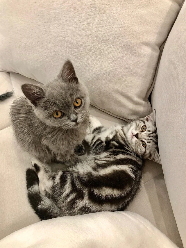 Miközben alszom, egyszer csak azt érzem az arcomon, hogy valami rettenetesen csiklandoz. Kinyitom a szemem és baromi közelről két cicafejet látok, akik az orrukkal bökdösnek.
