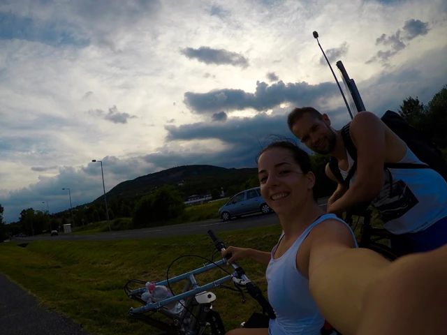 A második nap sem telt el izgalmak nélkül, hiszen hol megsültünk a melegtől, hol az orkán erejű széllel küzdöttünk. Badacsonynál járhattunk, amikor megláttuk a fekete felhőket, amik természetesen felénk tartottak, így a viharral is kergetőztünk, ami utunk utolsó részében elkapott minket. Mondhatni ronggyá áztunk, de akkor sem álltunk meg. Nem én lennék, ha ez a nap kimaradt volna borulás nélkül. Maradandót alkottam méghozzá óriási sebességgel, amit Zoli teljesen véletlenül meg is örökített. Olyat estem, hogy 6 métert gurultam, de a problémát nem az esés és az esetleges sérülések okozták számomra, hanem a félelem a fűben rejtőző siklók és egyéb lények miatt. Így sikítva futottam - nyilván négykézláb - vissza az út irányába. Talán a 3 esés közül, ez sikerült a legjobban. Mondanom sem kell, a mai napig ezen röhög mindenki, aki látta a videót - köztük én is.