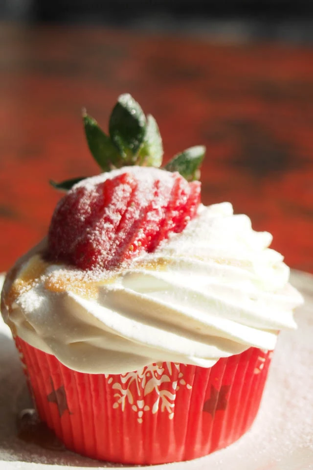 Mogyorós-fehércsokis-epres cupcake