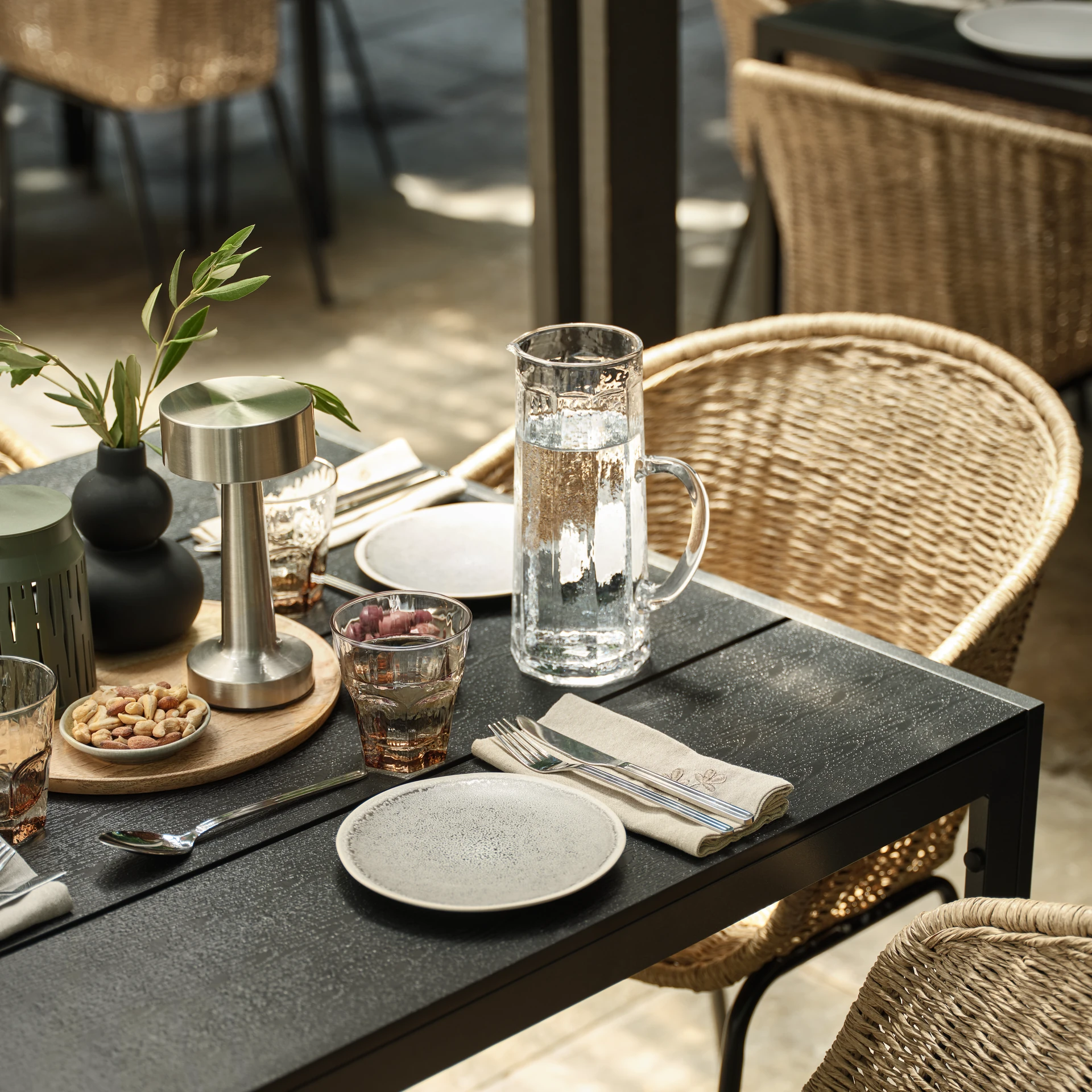A bordázott vagy strukturált üvegfelületek különösen jól illenek a skandináv hangulathoz: visszaverik a fényt, és finoman mozgalmassá teszik az asztalt anélkül, hogy túlzsúfolttá válna. A kerámiatálak természetes, enyhén rusztikus megjelenése pedig melegséget visz a kompozícióba.