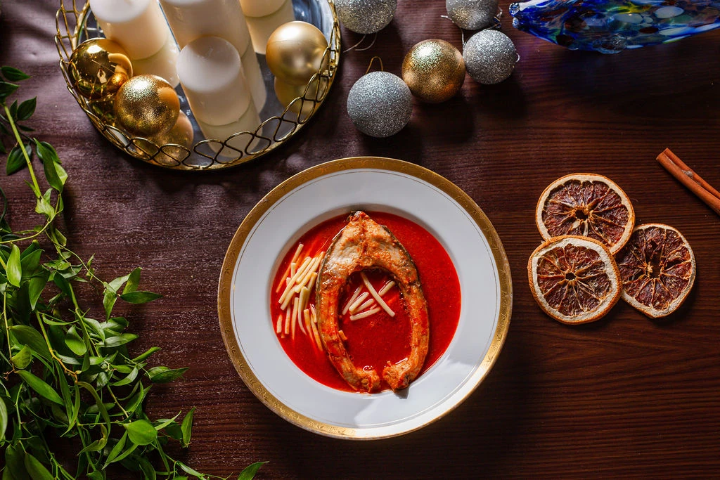A menü központi eleme a gazdag halászlé, amely akasztói szikipontyból készül, és minden szükséges kiegészítővel együtt érkezik. Ez az étel sokaknál a karácsony elmaradhatatlan része, a Costes Downtown változata pedig a klasszikus ízeket modern szemlélettel ötvözi. A halászlé után olyan főételek következnek, amelyek egyszerre idézik fel a hagyományos ünnepi fogásokat és képviselik a kifinomult gasztronómiát.