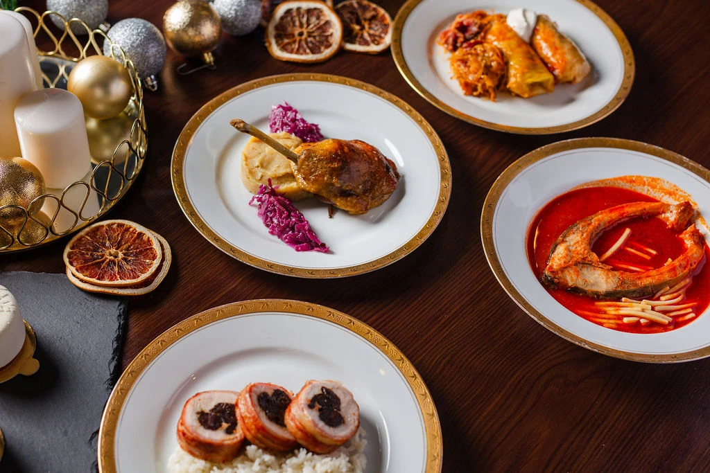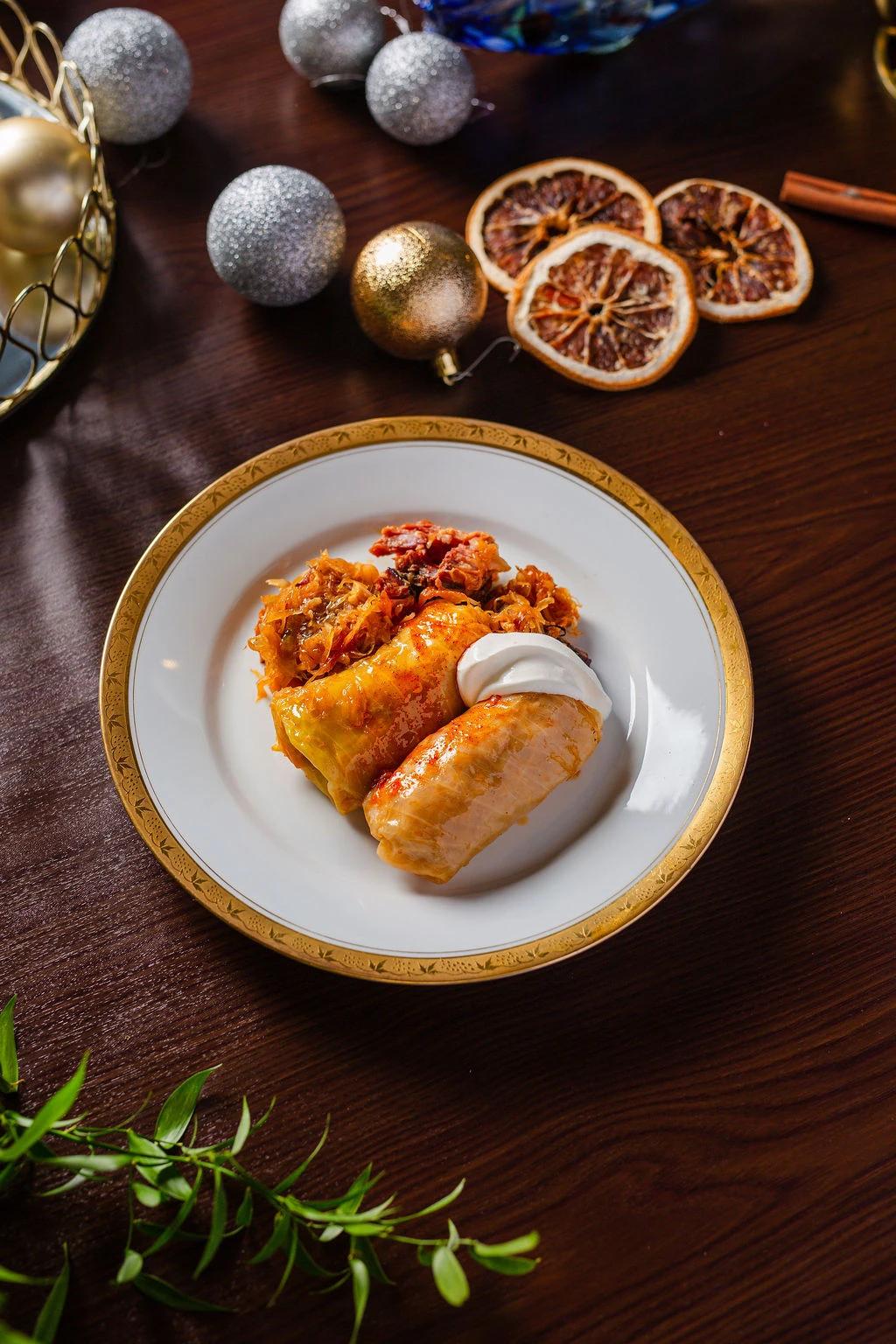 Az omlós kacsacomb almás lilakáposztával és hagymás tört burgonyával igazi klasszikus, amely az ünnepi asztalon mindig biztos választás. Mellette helyet kap a baconbe tekert, aszalt szilvával töltött pulykamell, amely jázminrizzsel kiegészítve könnyedebb, mégis ünnepi alternatívát kínál. A menüből természetesen nem hiányozhat a töltött káposzta sem, amely sok családban a karácsony egyik legfontosabb fogása.