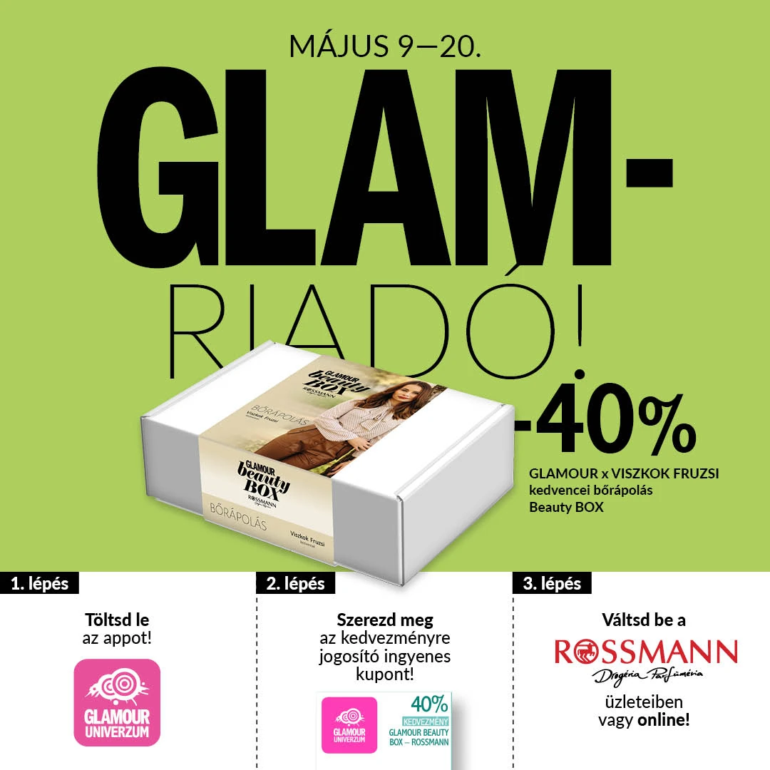 Ráadásul a Rossmannban kapható, Viszkok Fruzsi által összeállított Glamour beauty boxok most 40% kedvezménnyel vásárolhatók meg azok számára, akik letöltik a Glamour Univerzum alkalmazást és felhasználják a benne található ingyenes kupont!