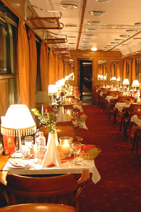 A GYERTYAFÉNY EXPRESSZ szalon-, bár- és étkezőkocsiból álló luxusszerelvénye háromórányi gasztronómiai kalandot nyújt azoknak, akik sajátos utazásra és múltidéző atmoszférára vágynak.