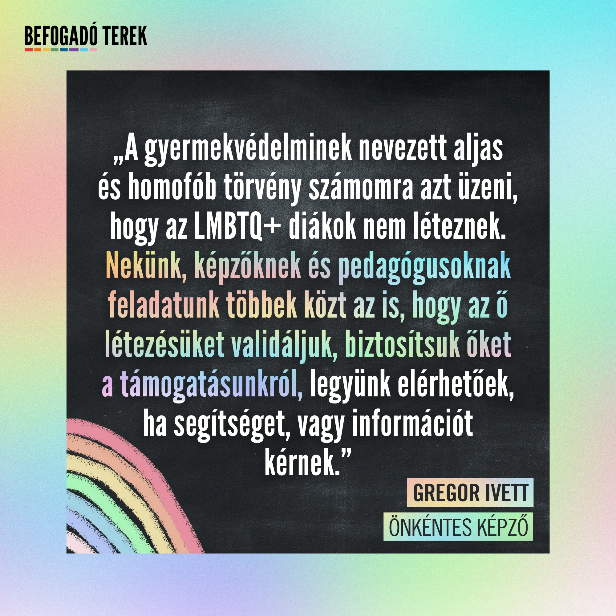 Gyerekeink, osztálytársaink, kollégáink azonban rövid távon is szenvednek a gyűlöletkeltés következményeitől. A téma tabusításának pedig leginkább azok a fiatalok az áldozatai, akiknek egyáltalán nincs kihez fordulniuk a kérdéseikkel és a félelmeikkel. Ha az otthoni közeg nem támogató, a velük foglalkozó többi felnőtthöz fordulhatnának, akik közül viszont sokan inkább kerülik a témát, nehogy rájuk süssék, hogy a melegséget népszerűsítik. Szerencsére sok pedagógus van, akik nem hagyják magukat megfélemlíteni, ez jól látszik az oktatási mozgalmak kapcsán is. Néhányan hangosabban, még többen pedig csendesen teszik a dolgukat a rájuk bízott fiatalok érdekében.