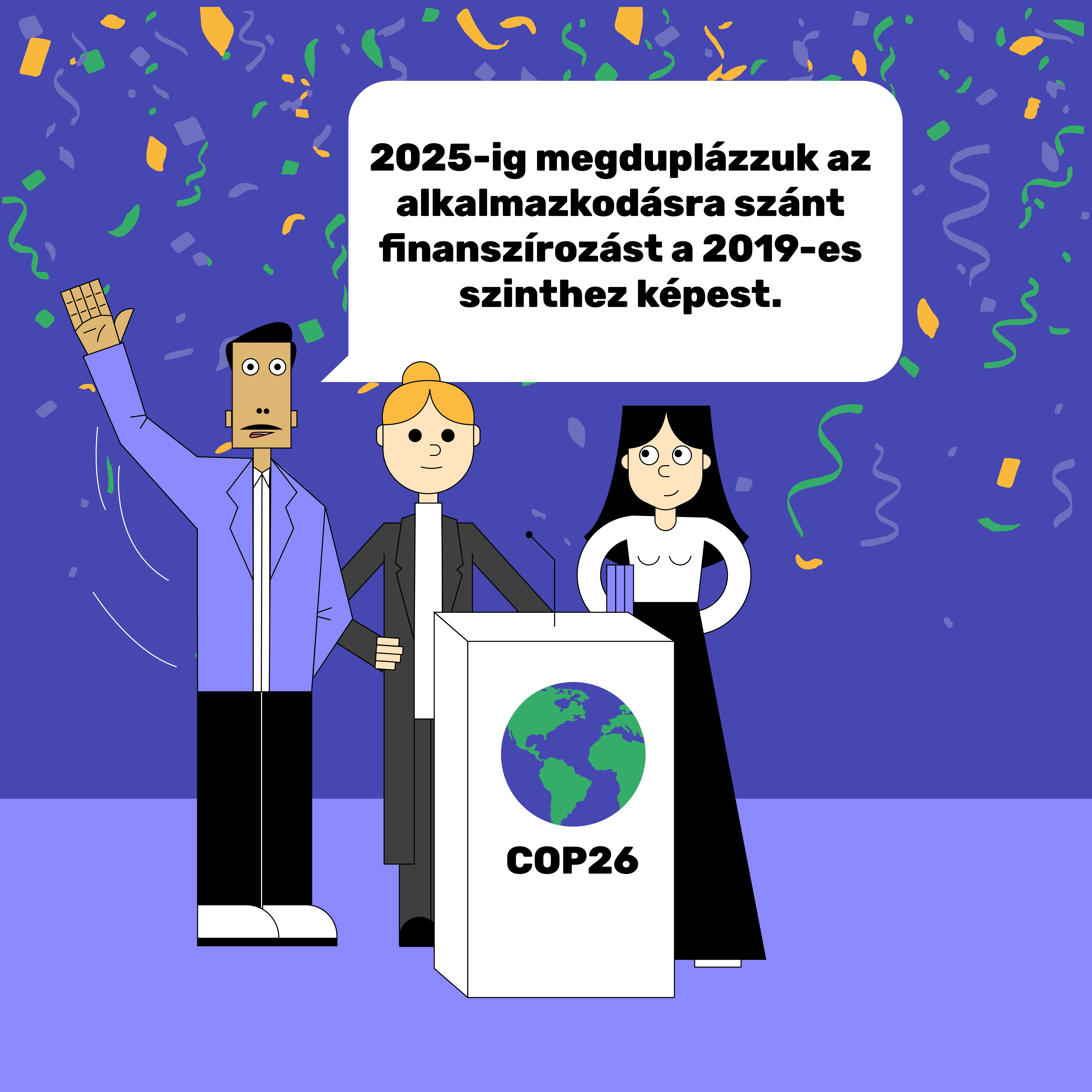 Az alkalmazkodás finanszírozása terén előrelépést jelent, hogy a fejlett országok megígérték, hogy 2025-ig megduplázzák az alkalmazkodásra szánt összeget a 2019-es szinthez képest.