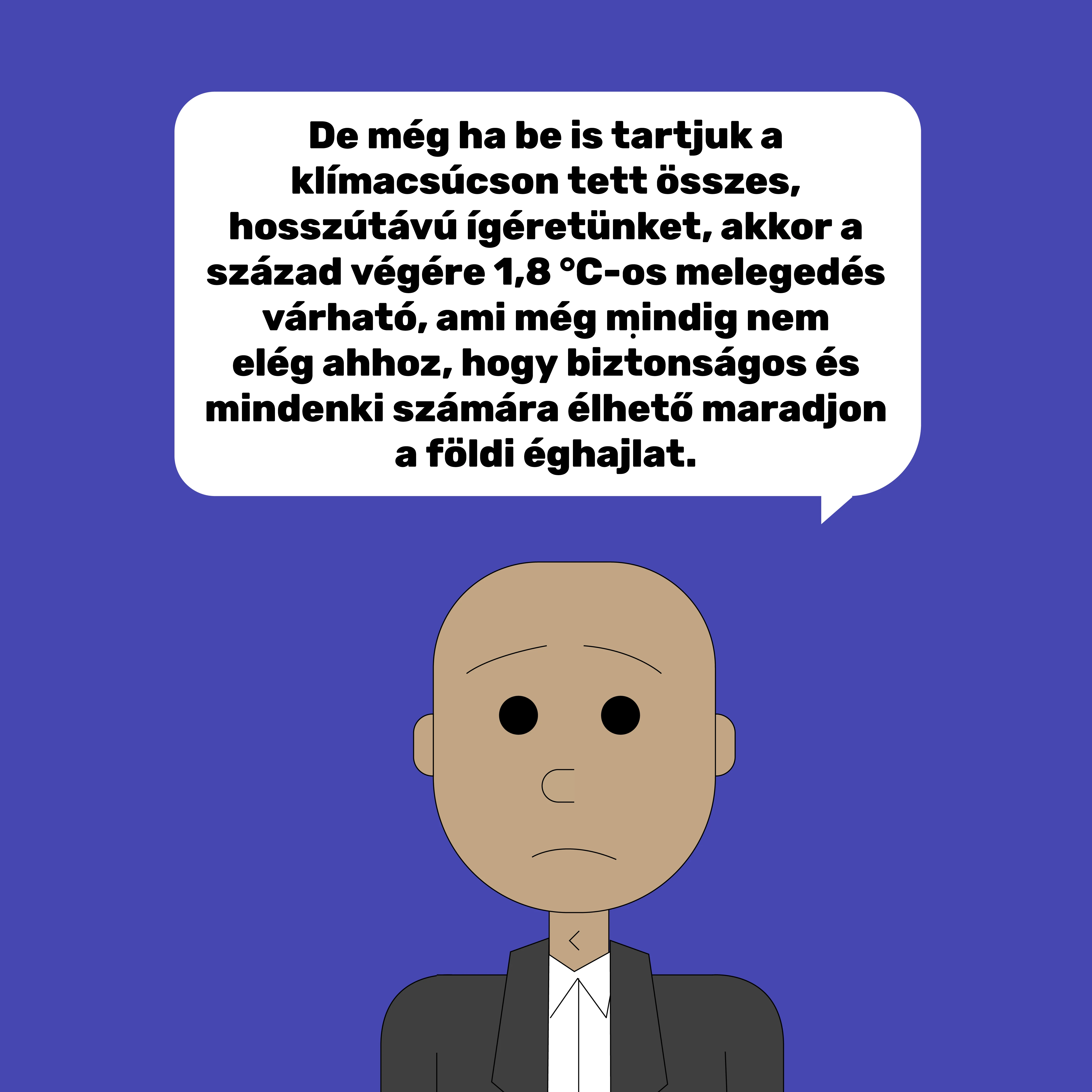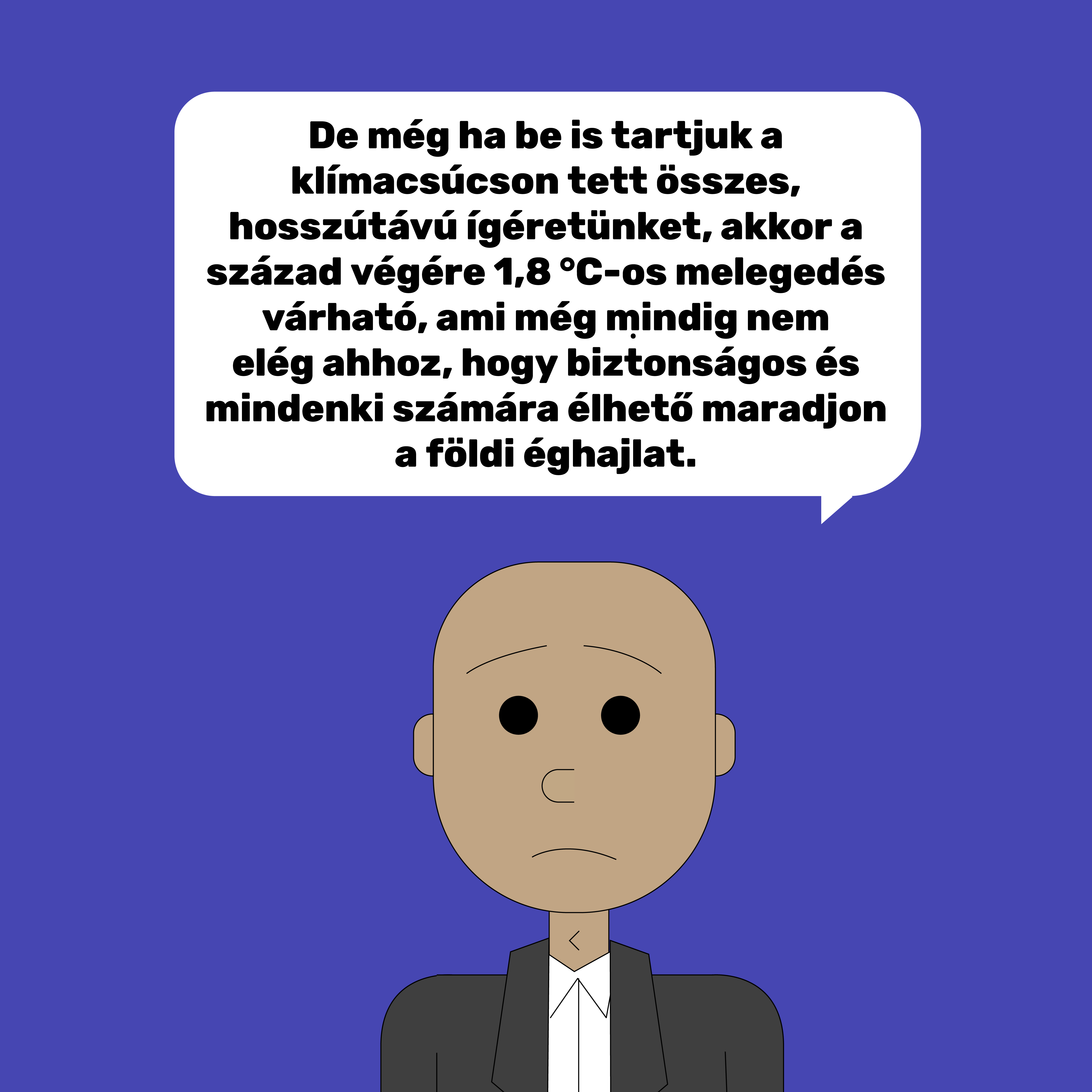 Ha pedig az országok a klímacsúcson tett összes, hosszútávú ígéretüket betartják, akkor a század végére 1,8 °C-os melegedés várható, ami még mindig nem elég ahhoz, hogy biztonságos és élhető maradjon a földi éghajlat. Ráadásul mindezeket a célkitűzéseket törvénybe is kell ültetni és konkrét rövid- és középtávú tervekkel, intézkedésekkel alátámasztani, különben „üres kalóriák” maradnak.