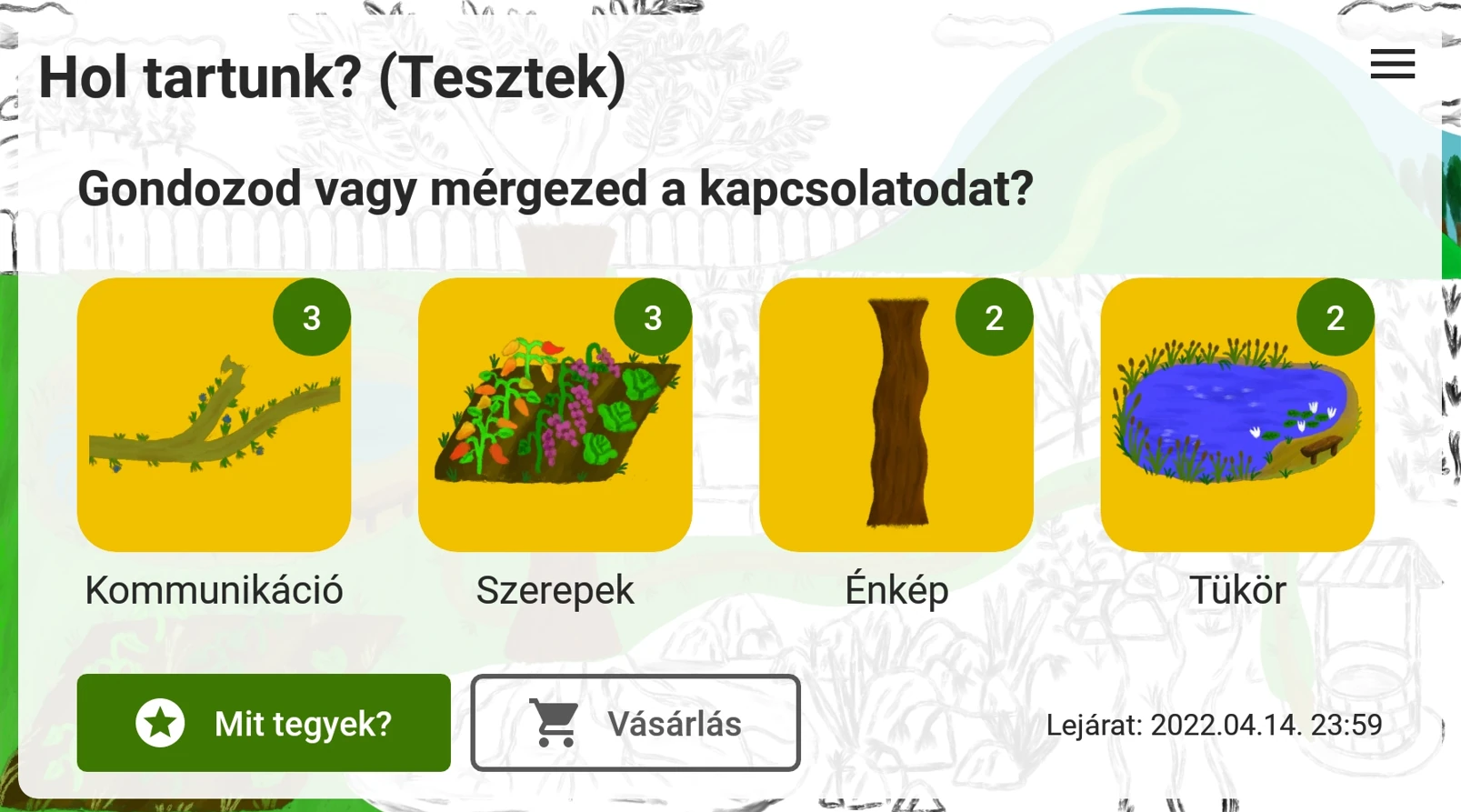 A Szeretetkert egy olyan egyedülálló applikáció, amelyben az önismereti és a párkapcsolati előrehaladást írásos anyagok, előadások és videós jelenetekkel bemutatott megoldások segítik, utóbbiakban pedig több haza ismert, tehetséges színész is közreműködik. Mindennek helyszíne pedig egy varázslatos szimbolikus kert. Vagyis átgondolt, alapos és hatalmas munka áll a projekt mögött, mely egy állapotfelmérést követően akár több hónapon keresztül tartó tanulási és önismereti lehetőségeket kínál.