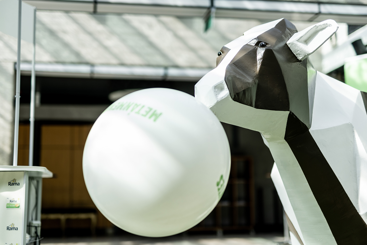 A metánmentes jövő mellett kampányol a Rama margarin, egy lufit fújó tehén installációjával is szeretnék felhívni a figyelmet arra, hogy mindannyiunknak változtatnunk kell, kevesebb húst és tejterméket kell fogyasztanunk a jövőben