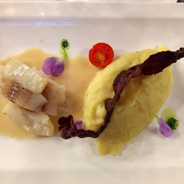 4-5.A két főfogás egyike volt a marhapofa Pauwel Kwak sörös pecsenyelével, kenyérpudinggal és édesburgonya chips-el, majd roston sült tőkehalfilé Rodenbach sörös édes-savanyú mártást, szerecsendiós burgonyapürét és sült bacont szolgáltak fel