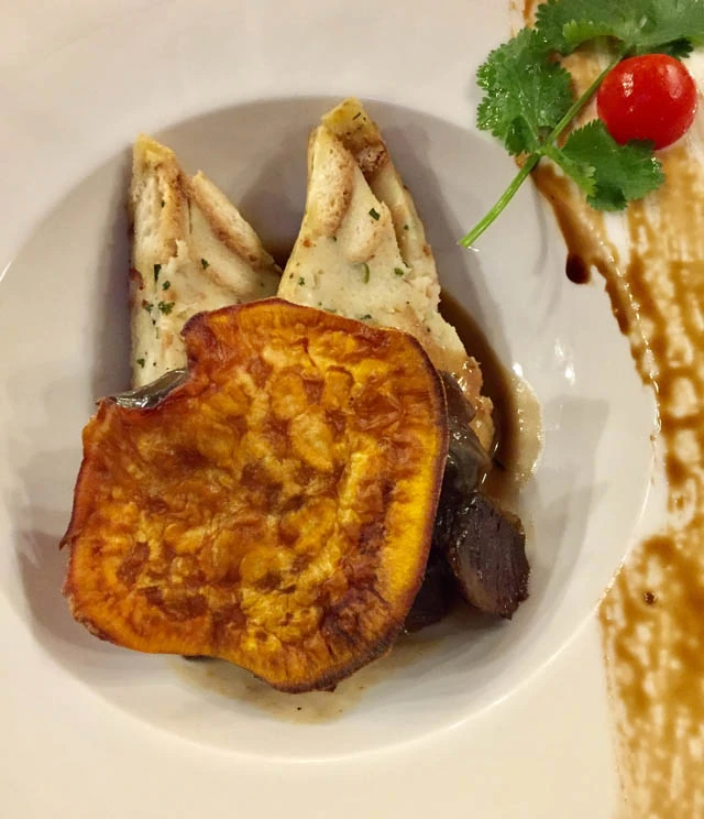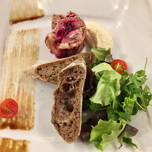 2. Második fogásként Saison sörrel fényezett füstölt-főtt sonka volt a menü céklával és metélőhagymával