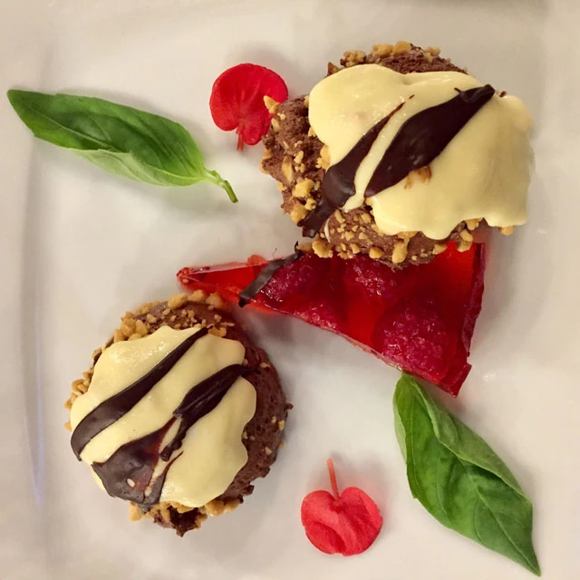 6. Az édes ízek a Chimay Trappista barna sörös csokoládé mousse-ban sós, pörkölt földimogyoróval és málnával teljesedtek ki