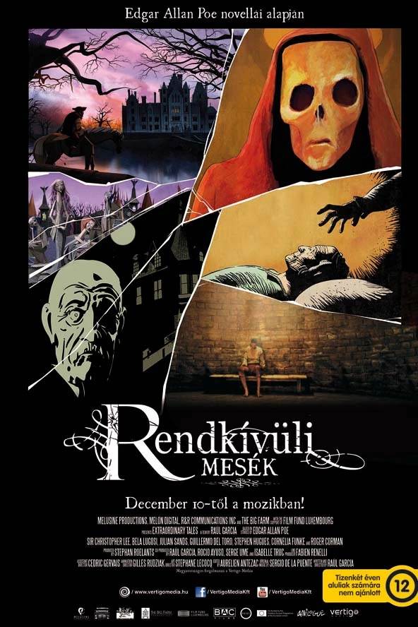 A Rendkívüli mesék (12), Raul Garcia luxemburgi-spanyol animációs rendező filmje, Edgar Allan Poe öt ismert rémtörténetének különböző stílusú adaptációja. Az antológia egyes sztorijait olyan világhírű színészek, rendezők mesélik el, mint – az archív felvételről megszólaló – Lugosi Béla, Christopher Lee, Guillermo del Toro, Julian Sands, és Roger Corman. A történetek hangulatának megfelelően láthatunk klasszikus, fekete-fehér, gótikus mesét, számítógépes animációt, stilizált fotó-realista produkciót, de képregény-adaptációra emlékeztető feldolgozás is megtalálható közöttük.