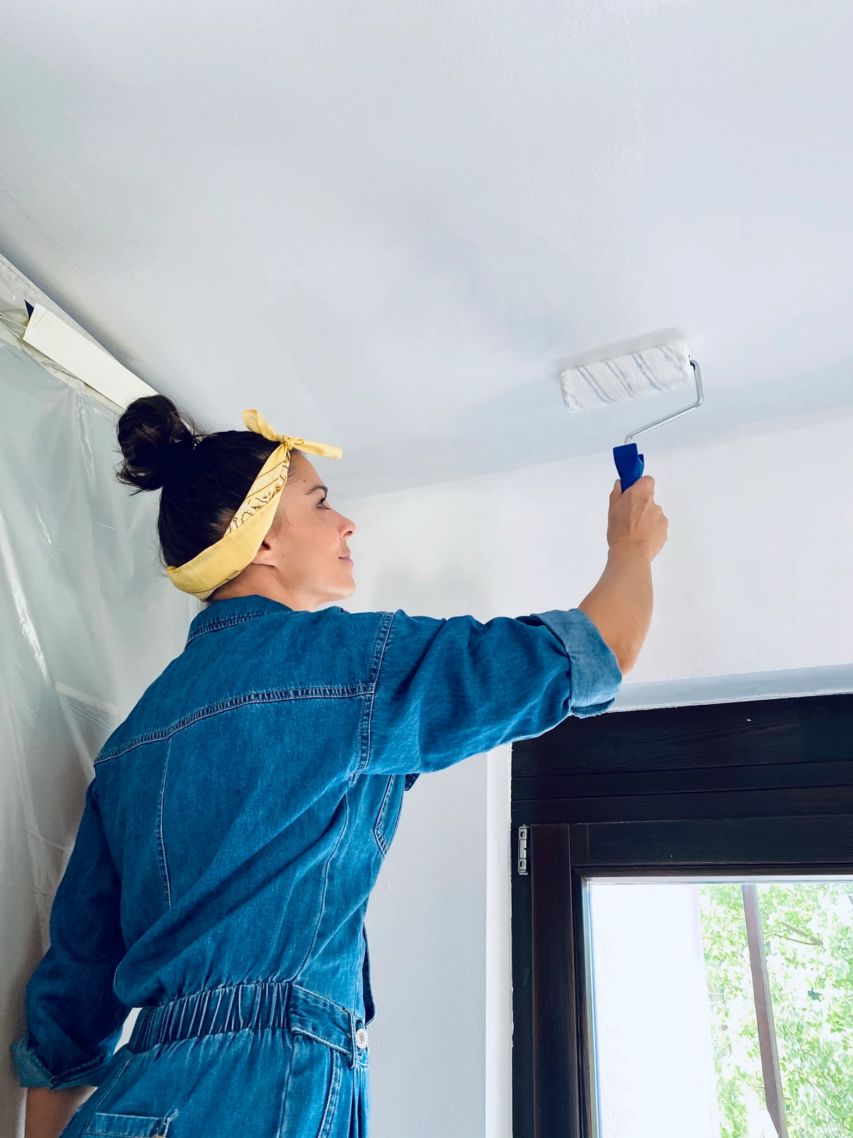 Tetőtéri lakásban élünk, fél éve már, hogy beszivárgott a víz a tetőn keresztül, eláztatva a nappali és a háló egy-egy sarkát. Mostanra sikerült megszűntetni a beázás okát, és most száradt ki annyira a fal is, hogy javítani tudjuk a felületet. Ha mindez nem lett volna elég, húsvétkor úgy meglocsolt a férjem, hogy az oldalsó falak is eláztak és foltosak maradtak. Így kapóra jött az otthonlét, hogy hozzáfogjunk a festéshez.
