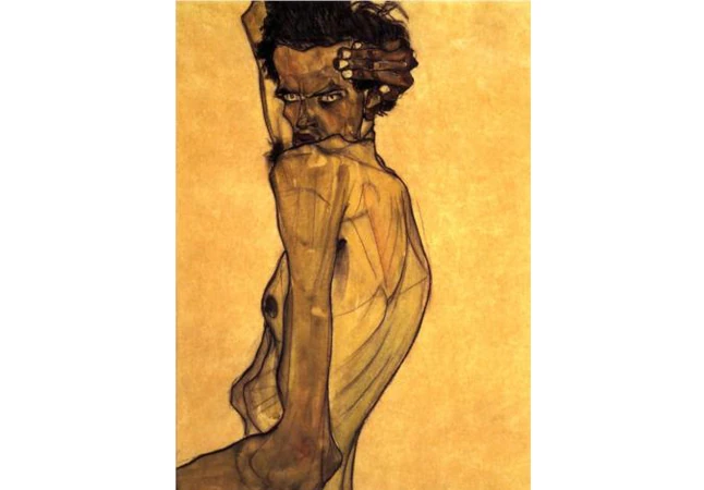 4. Az osztrák Egon Schiele – a "szelfik" egy másik koronázatlan királya - életének mindössze huszonnyolc éve alatt szintén legalább száz önarcképet alkotott, melyeken, csak úgy, mint más festményein is, kiemelt téma az elidegenedés, a lecsupaszítottság, az elszemélytelenedés. A művész több aktot is festett önmagáról, a képen az egyik kevésbé sokkolót láthatjuk…