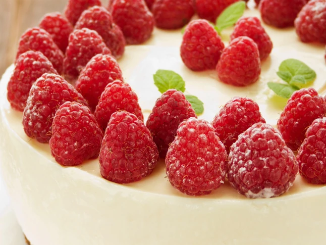Hozzávalók: 225 g sima liszt,100 g vaj, apróra vágva, 2 evőkanál porcukor, 1 tojás sárgája, 3 teáskanál hideg víz, 750 g friss ricotta, 100 g porcukor, 2 tojás, 2 teáskanál finomra reszelt citromhéj, 1 teáskanál vanília kivonat, 125 ml tejszín. A tálaláshoz: málna