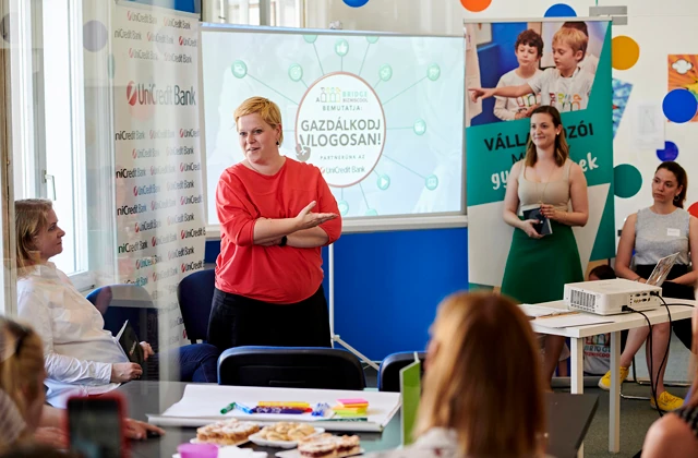 A Bridge Bizniscool az UniCredit Bankkal közösen friss szemléletű, naprakész tananyagot dolgozott ki 11-14 éves gyerekek számára. A "Gazdálkodj vlogosan!" program keretében a gyerekek egy vlogger vállalkozás kulisszái mögé tekinthetnek be, kipróbálhatják lépésről-lépésre, mi kell ahhoz, hogy egy véleményformáló márkája sikeres legyen, és közben játékos formában ismerkedhetnek meg alapvető pénzügyi és vállalkozáshoz kapcsolódó fogalmakkal.