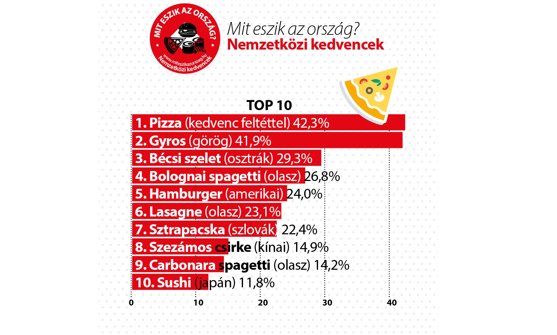 Magyarország kedvenc nemzetközi ételei a következők: