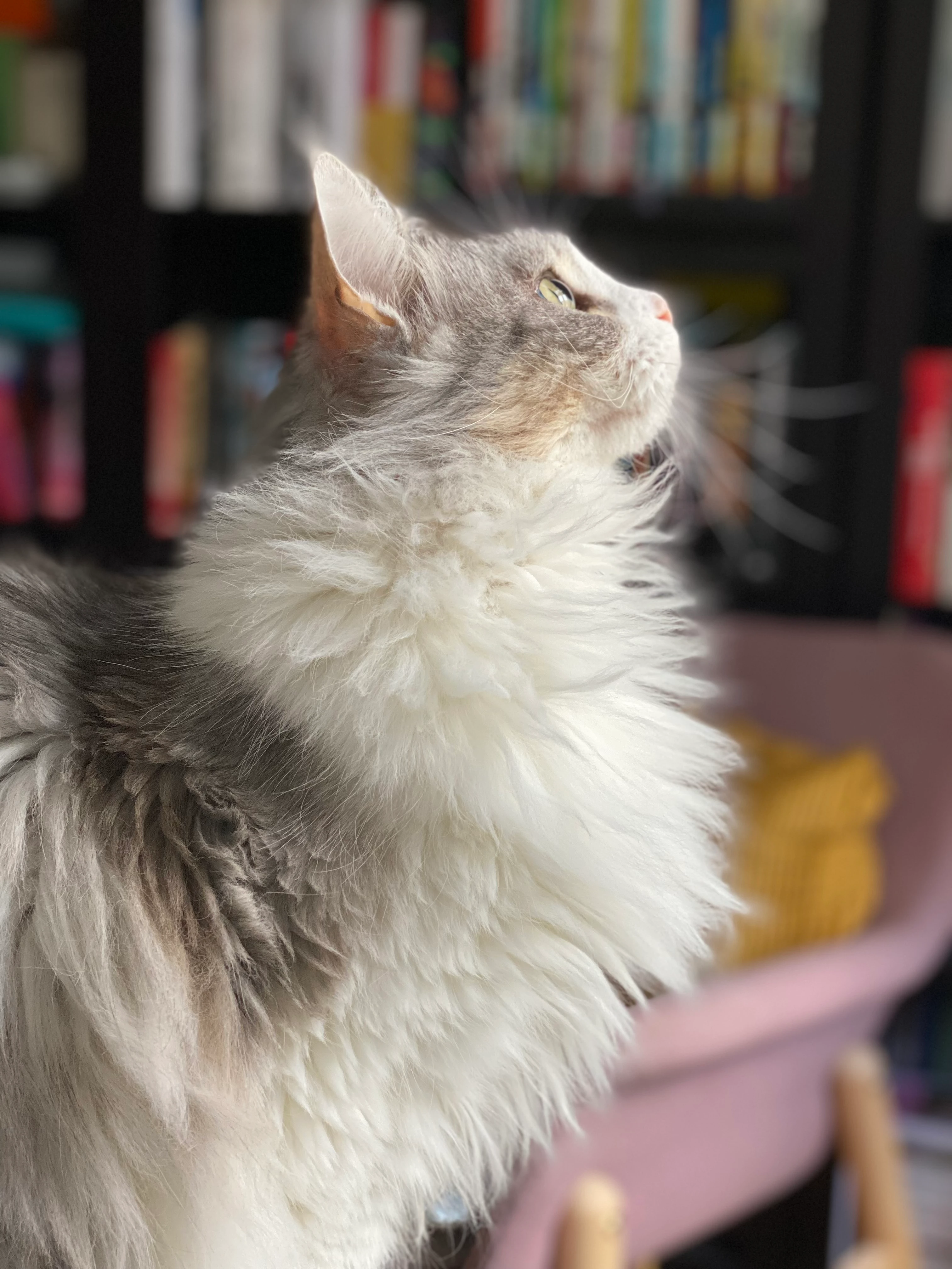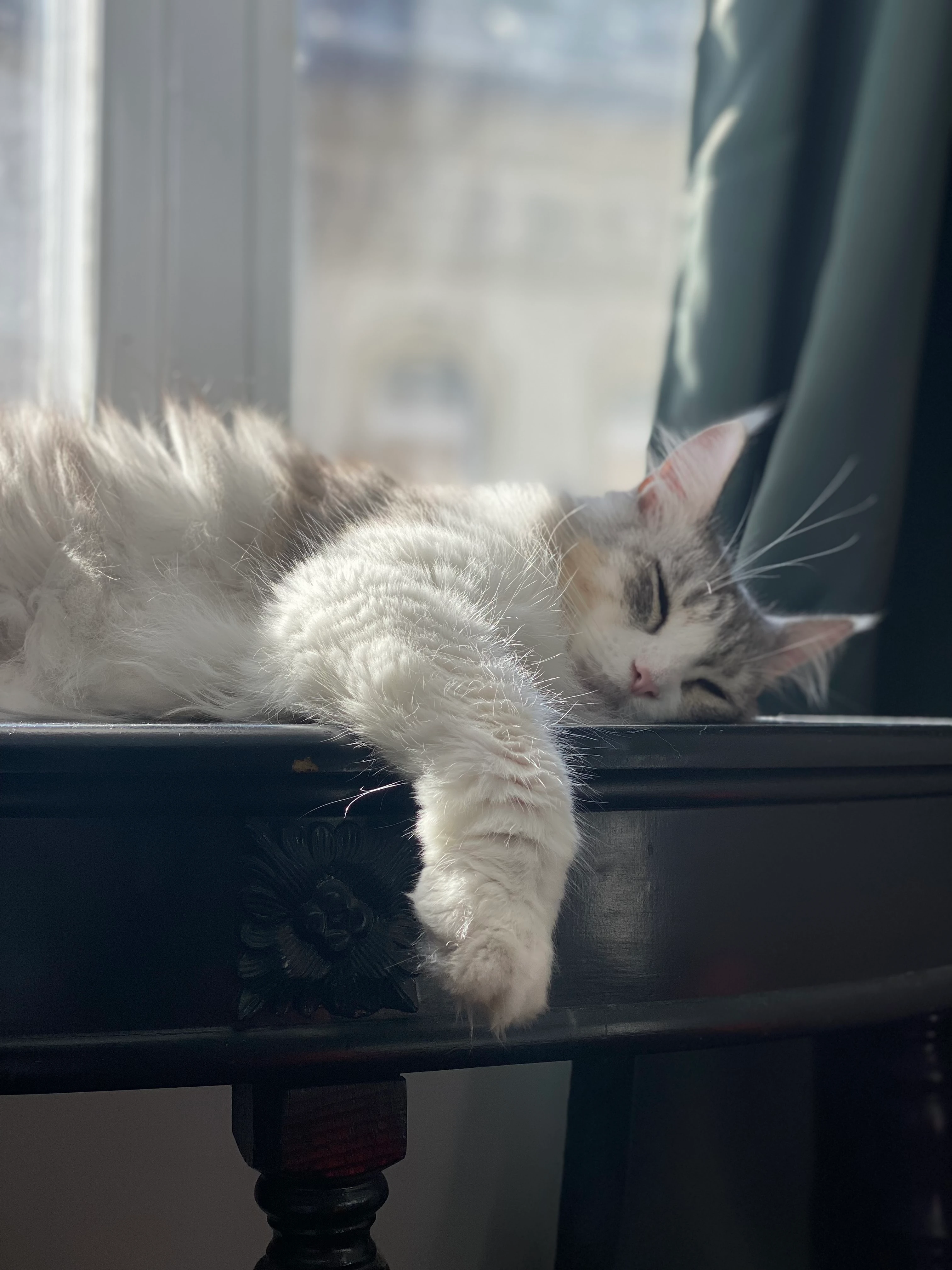 Nádja közel hét éves, egészséges, ivartalanított Maine Coon cicalány, aki mohón ropogtatja a száraz eledeleket és izgatottan lefetyeli a nedves ételeket. Reggeleit aktívan kezdi, kedvenc játékával, plüss Daxlival önfeledten kergetőzik. Időnként a még ébredező gazdáit az ágyban lepi meg vidám kurrogásával, sőt az ébresztőóra szerepét is betölti. Készülődés közben mindenhová elkísér minket, és munkába/iskolába készülő lábak után kapkod. Ahogy elcsendesül a lakás, visszahúzódik kedvenc helyeire egész napos szundikálásra. Alvási periódusait evéssel-ivással, tisztálkodással, alomlátogatással, galambok megfigyelésével, territóriuma körbejárásával szakítja meg, hogy aztán újra megpihenjen, akár hanyatt fekve, ami állítólag azt jelenti egy állat esetében, hogy nagy biztonságba érzi magát otthonában.