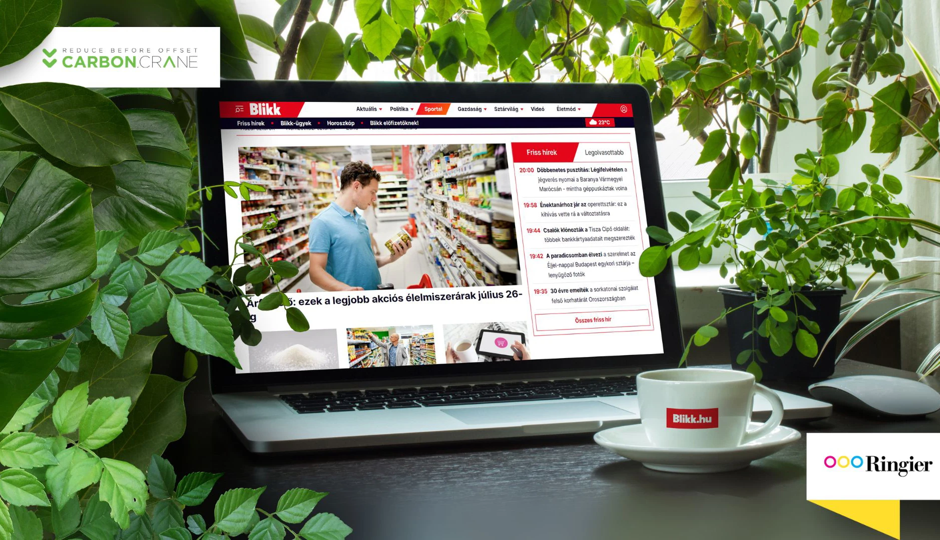 A folyamat a legnagyobb napi látogatószámú hazai híroldal, a Blikk.hu karbonhatékonyságának mérésével indul idén nyáron, együttműködésben a Carbon.Crane csapatával. Médiavállalati tevékenységének környezetterhelését 2021 óta méri és csökkenti tudatosan a Ringier Hungary, a Blikk, a Glamour, a Kiskegyed, a Sportal.hu, a GEO magazin, az EgészségKalauz.hu, és számos további digitális és nyomtatott kiadvány kiadója.