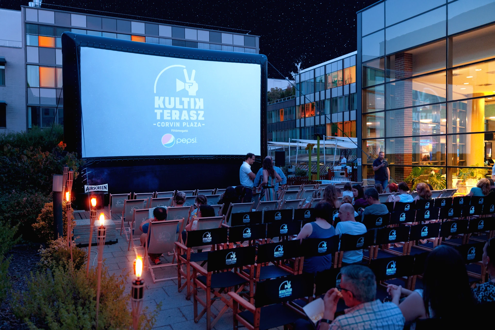 A vászon sem marad el attól, amit megszokhattunk, a KULTIK Teraszon például egyedülálló airscreent használnak. Ez az óriási, felfújható vászon akár vízen vagy homokon is megállja a helyét, és habár pehelykönnyű, ellenáll a viharos szélnek is. Így már tényleg csak a megszokott mozis nasikat kell beszereznünk: még szerencse, hogy a teraszokon nachosból, pattogatott kukoricából és vattacukorból sincs hiány.
